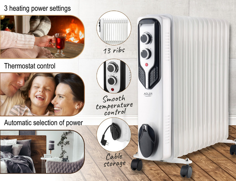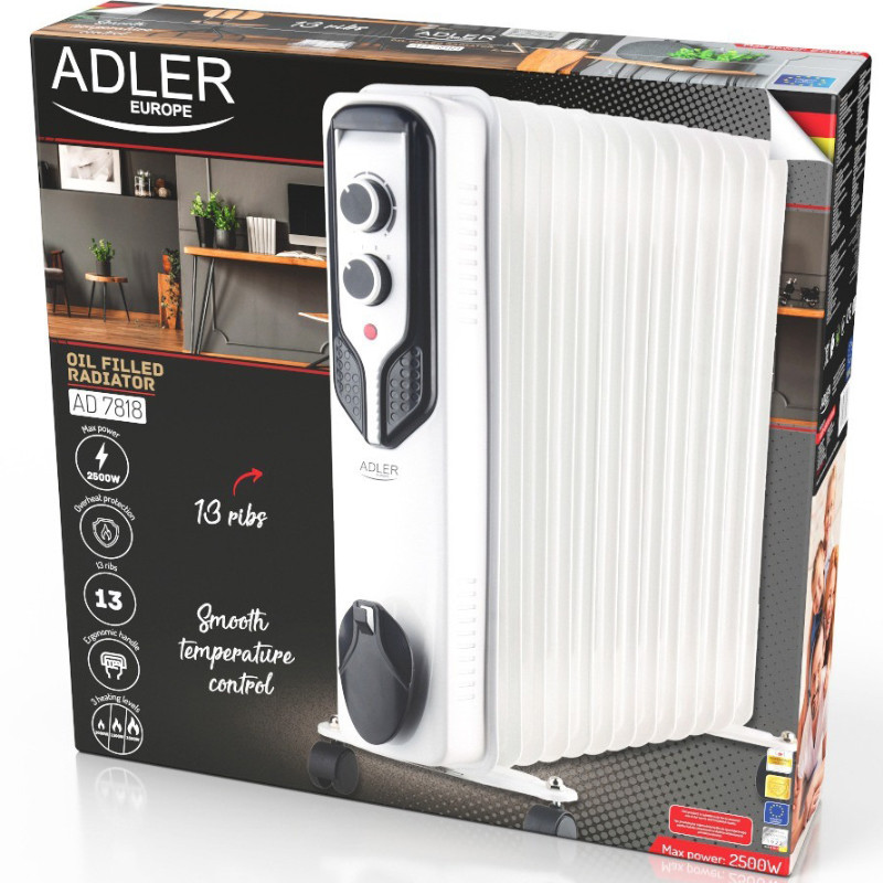ÕliradiaatorAD 7818, 2500W, valge; AD 7818 ADLER
