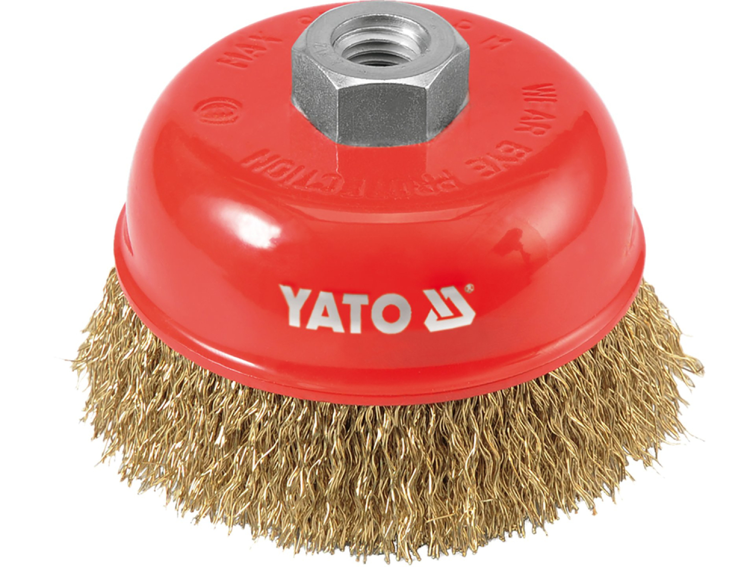 The YATO Cup Brush, model YT-4766, is designed for effective cleaning and surface treatment. It is ideal for use in various power tools and offers a durable construction for extended usage.