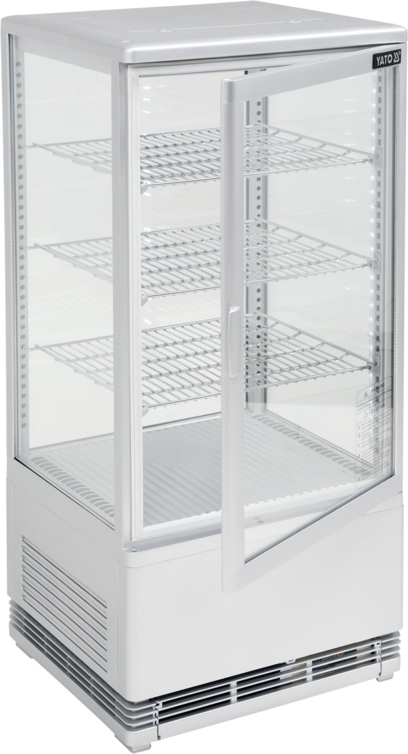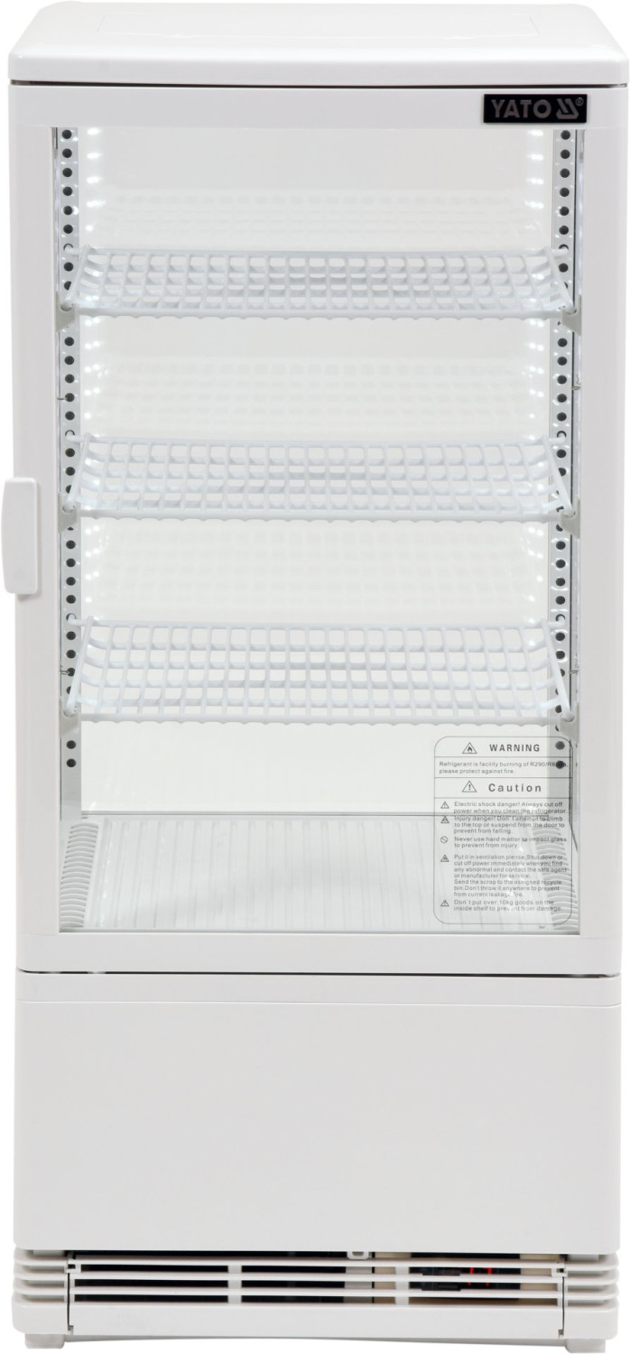 Galda vitrīna 78L, YG-05055, YATO, balta, izmēri 42x38x96 cm, 3 plaukti, automātiska atkausēšana