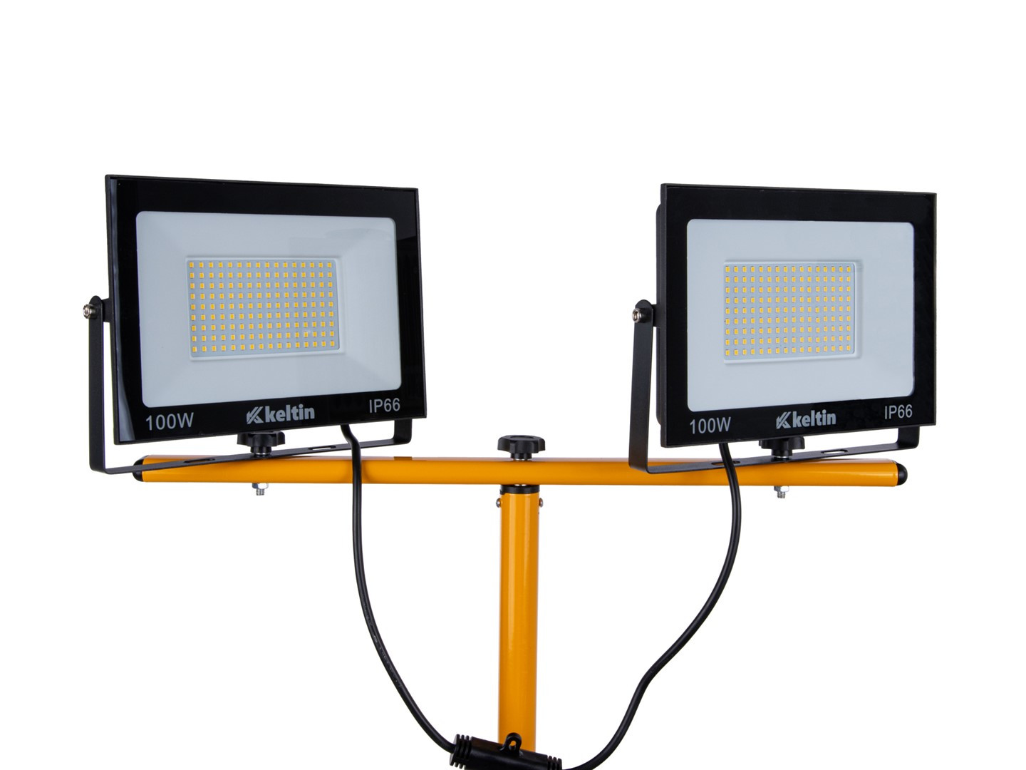 LED prožektors ar teleskopisku statīvu, 2x100W, auksti balta gaisma 6500K, K02050, Keltin