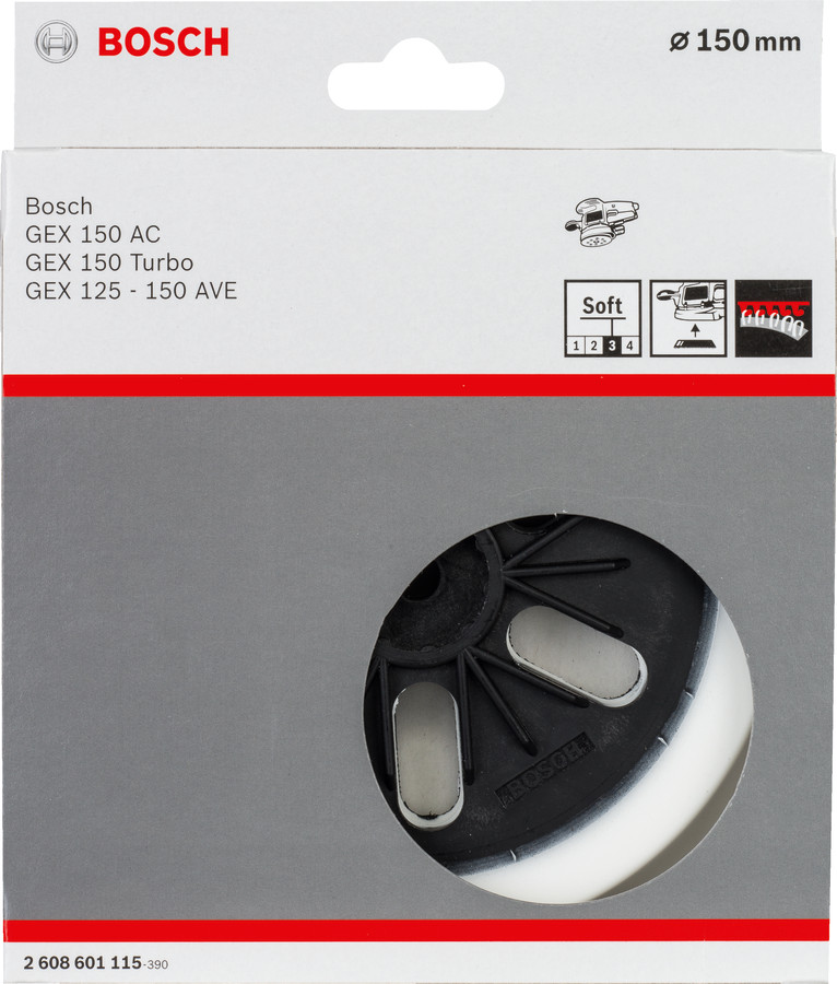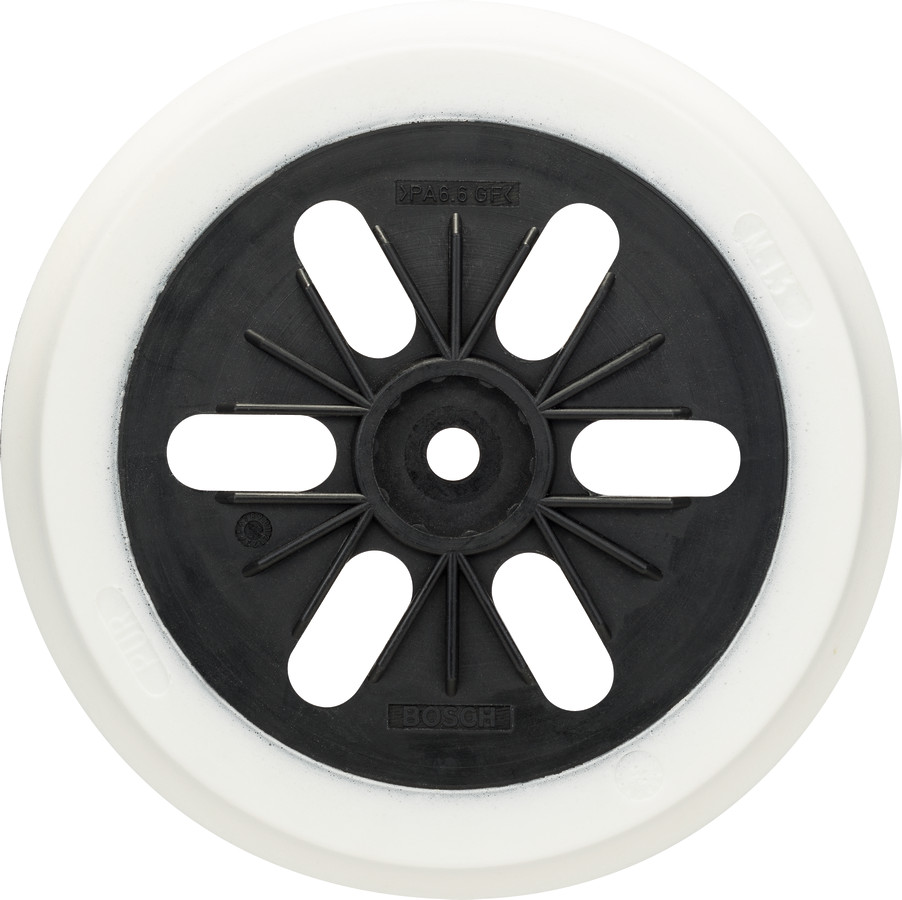 Gumijas slīpšķīvis D 150 mīksts, Ekscentra slīpmašīnām SLĪPĒŠANAS PAMATNE AR 6 ATVERĒM, 2608601115, BOSCH