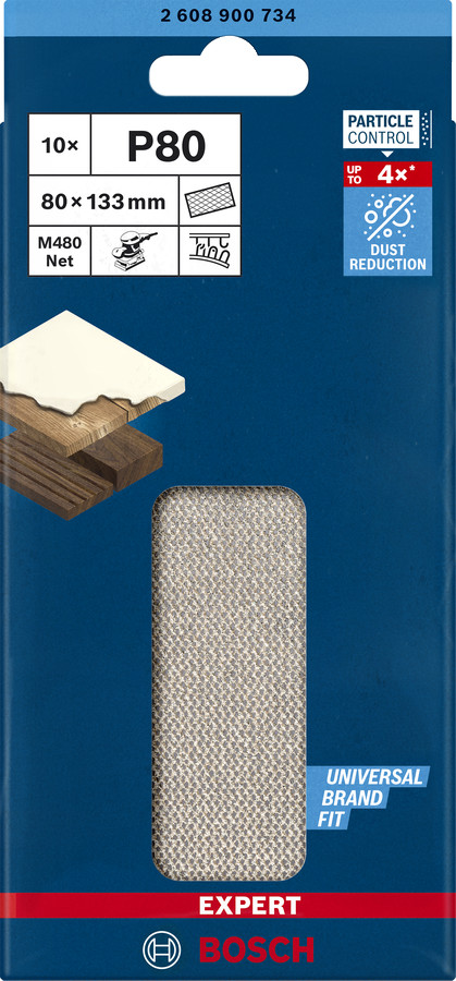 Slīpēšanas tīkls orbitālajiem slīpmašīnām, putekļu samazināšana, 80x133 mm, 80 grauds, 2608900734, BOSCH