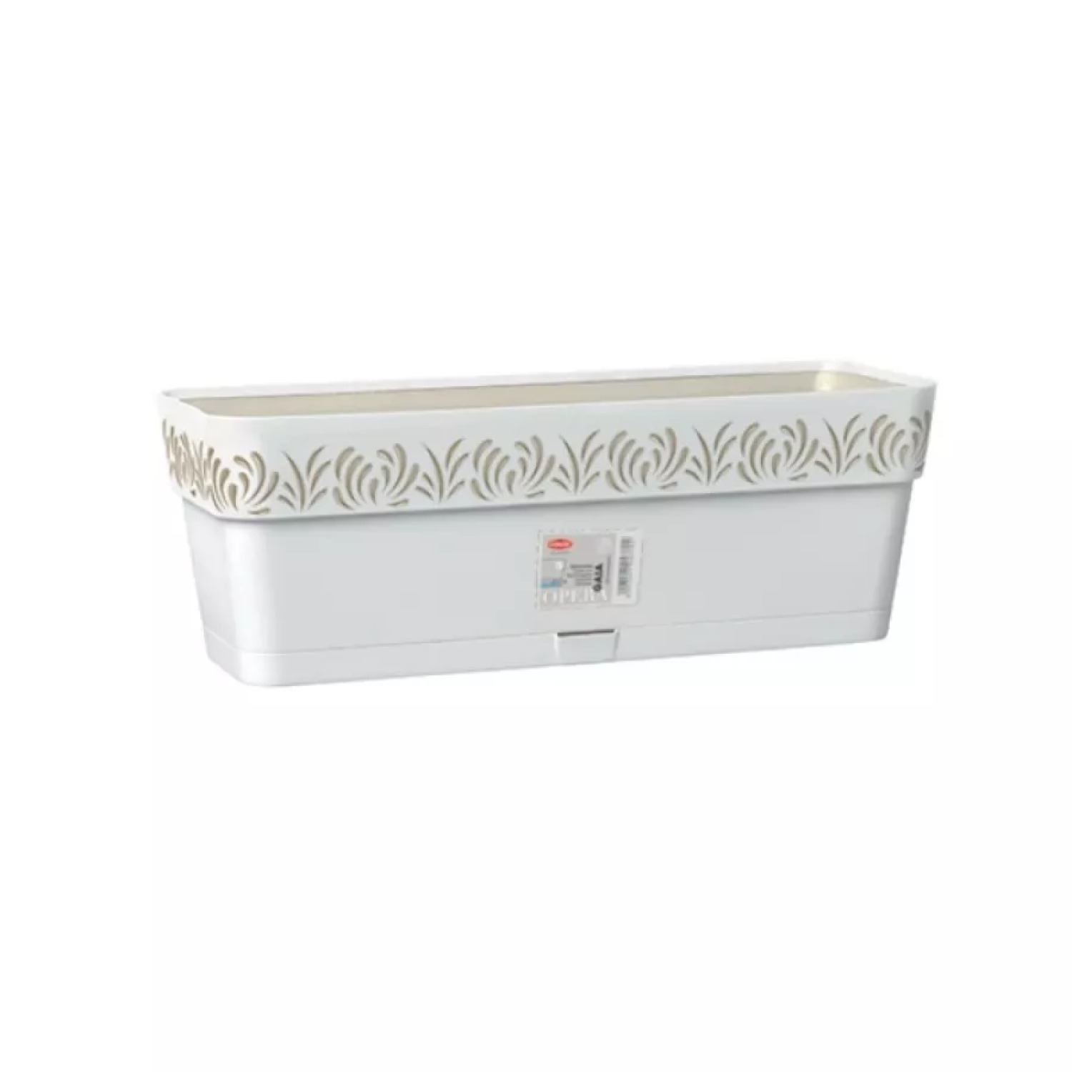 The STEFANPLAST Flower Box with Tray (model 2188800) features a self-watering system, making it ideal for both indoor and outdoor use.