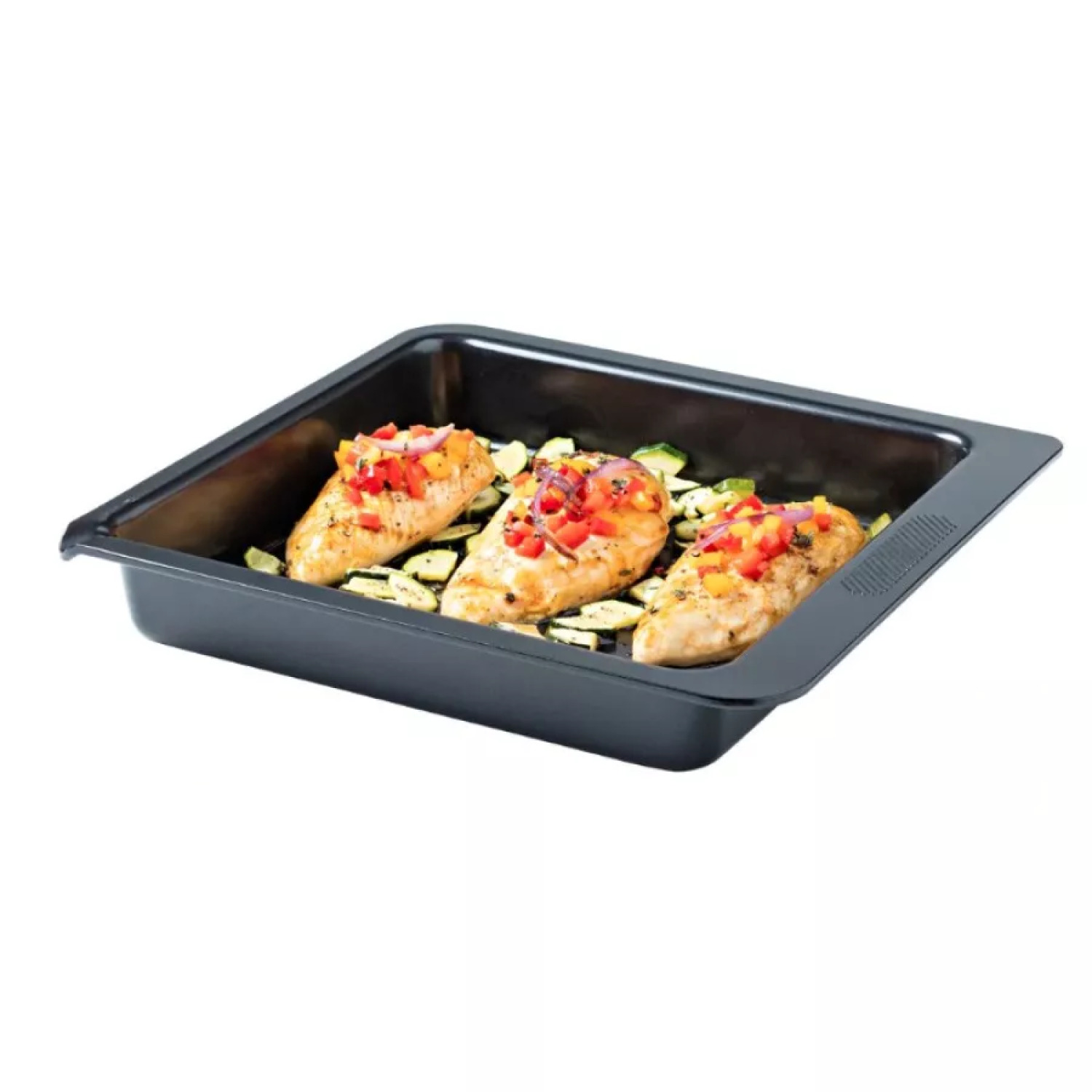 TheMagic Baking Pan is made of the highest quality stainless steel and is designed for easy food preparation. Suitable for: oven 230°C. Dishwasher safe.