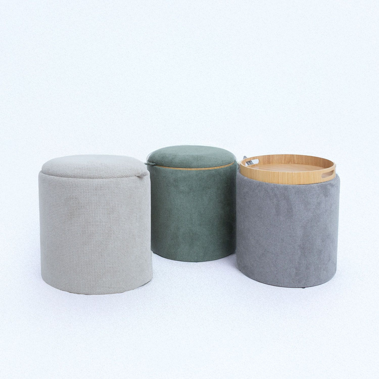 Tumba / galds HIRO D34,5xH37cm, pelēks, ar uzglabāšanās vietu un paplāti 88561