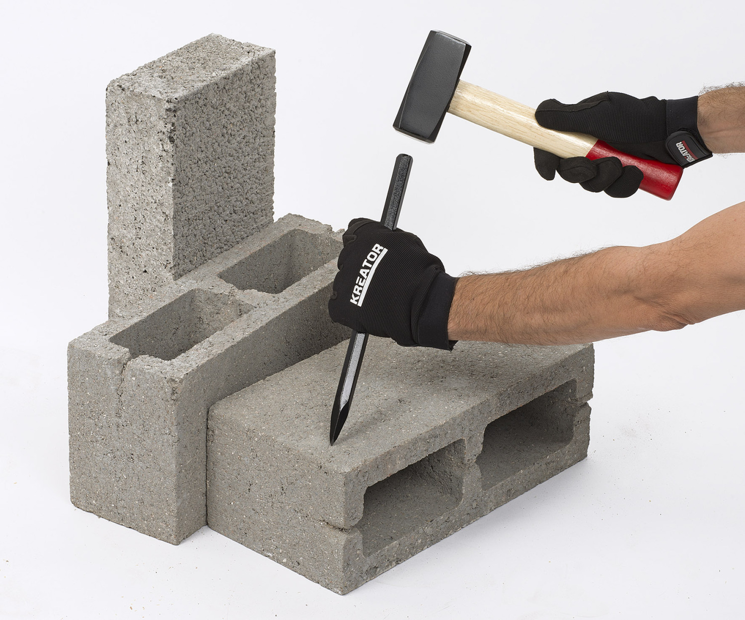 The KREATOR Cold Chisel KRT462001 is a solid one-piece tool designed for cutting stone and brick. Measuring 250 mm in length and featuring a hex 16 tip, this carbon steel chisel is used in conjunction with a mallet for effective chiseling tasks.