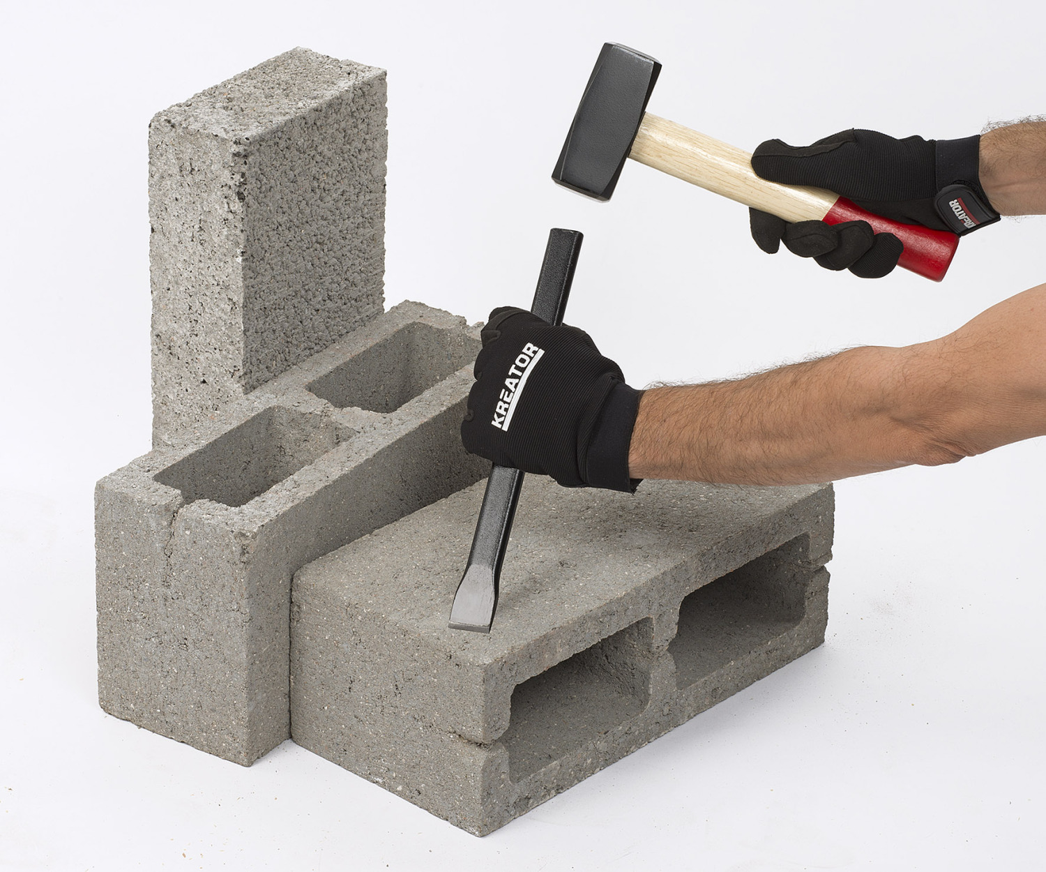 This solid one-piece cold chisel by KREATOR, model KRT462005, is 300 mm in length and features a working width of 30 mm. It is made of durable carbon steel and is designed for use with a mallet to effectively chisel stone and brick.