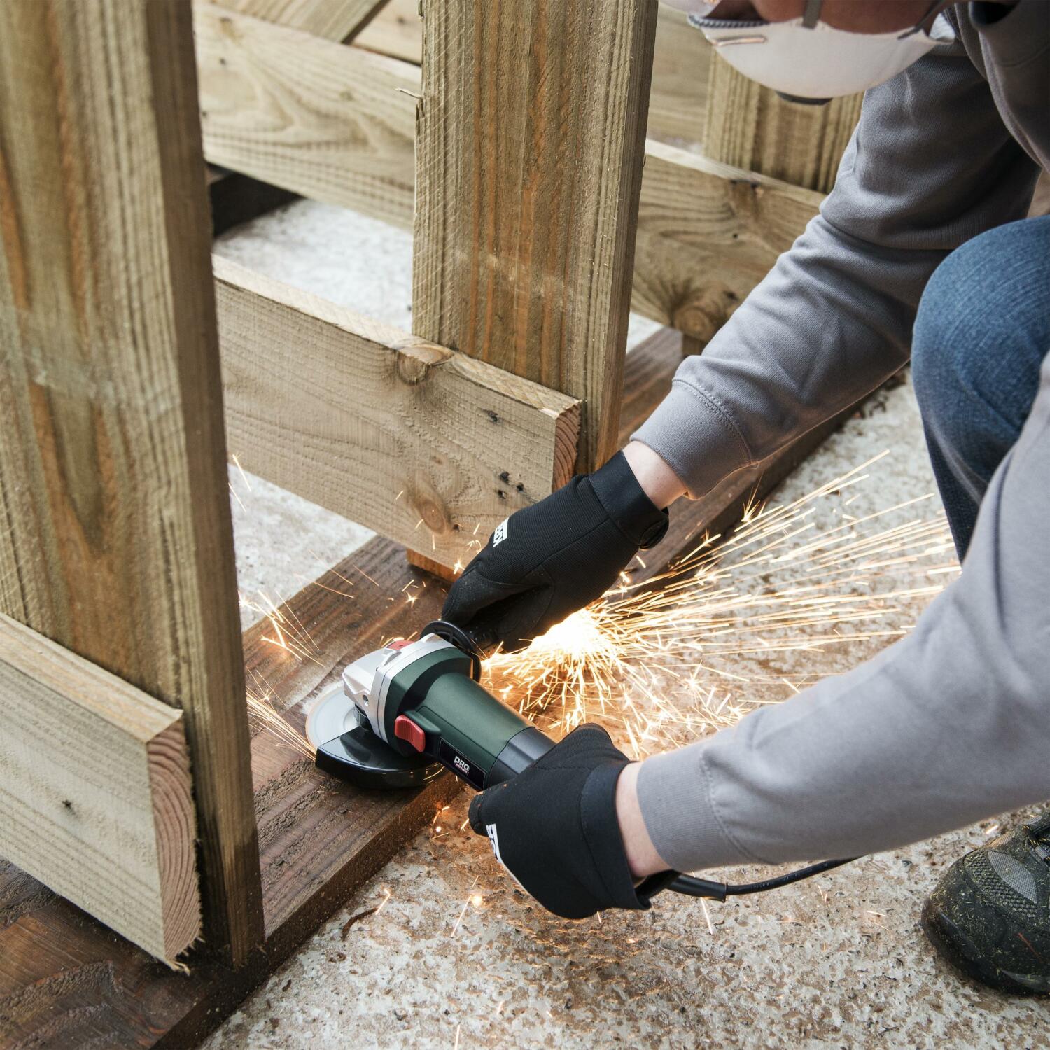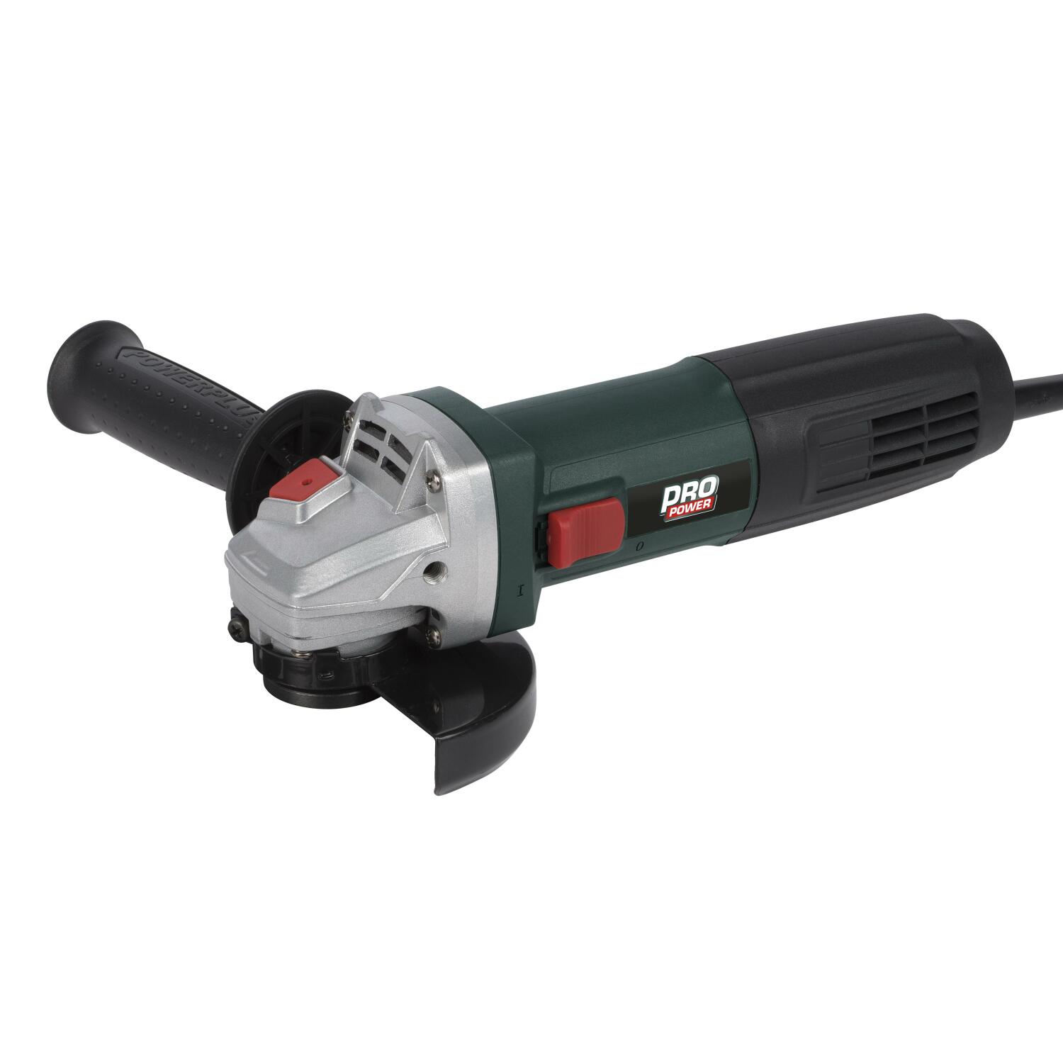 For enhanced control, the angle grinder comes with an auxiliary handle that can be mounted in two different positions. A safety guard ensures safe operation during use.