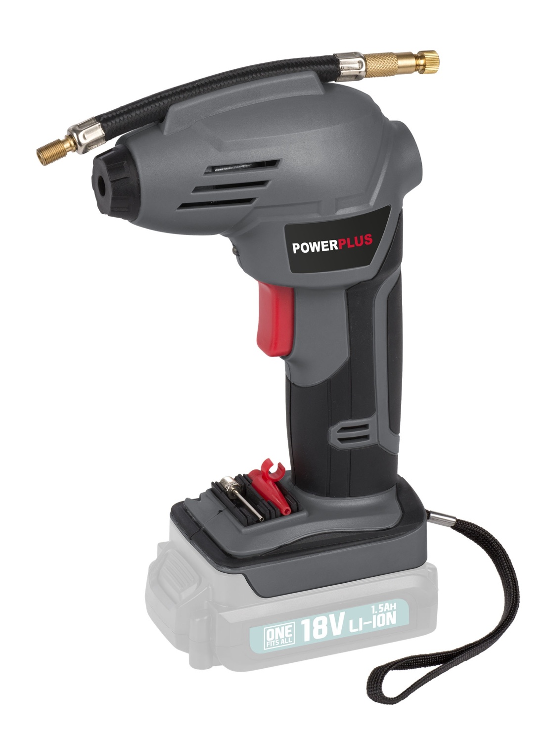 Pumpis 18V, POWERPLUS, POWEB5010, bez akumulatora un lādētāja, 8 bar, 8 l/min, 4 adapteri
