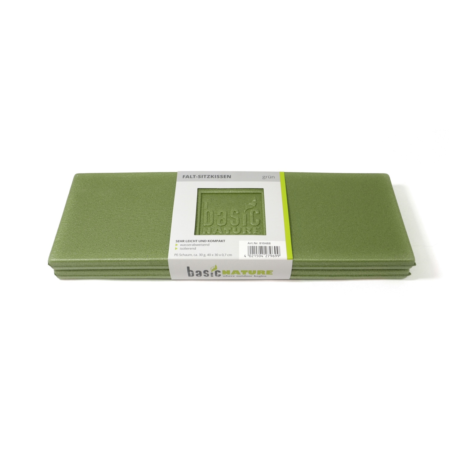 Salokāms sēdekļa spilvens, BasicNature, R810488, 40x30x0.7 cm, ūdensizturīgs, viegls, zaļš