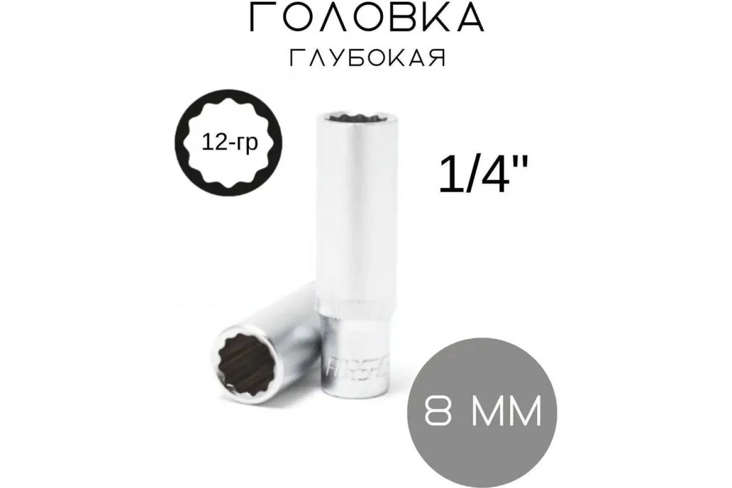 The Deep Socket 8 mm 1/4" from FORSAGE is a tool designed for use with impact wrenches, ensuring fast and effective tightening and loosening of fasteners. Its deep design and twelve-point profile guarantee a secure grip and prevent slipping.
