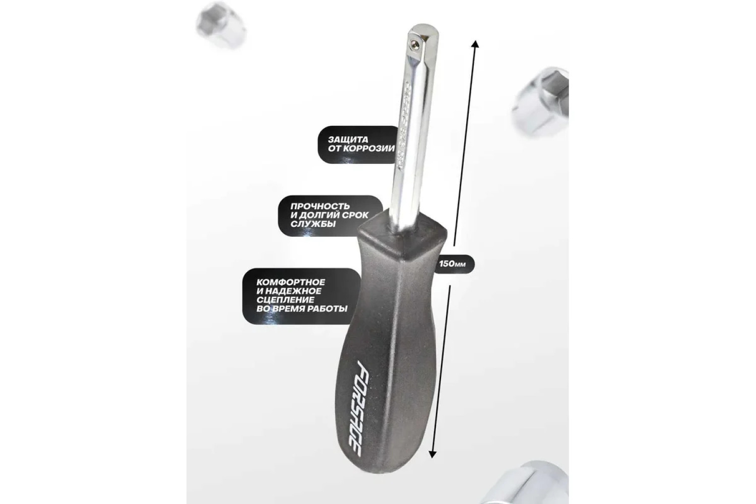 The FORSAGE F-8143 socket handle is a universal tool designed for maximum comfort during repair and assembly work. Measuring 150 mm in length and made from durable chrome vanadium steel (Cr-V), it ensures high load resistance and longevity.