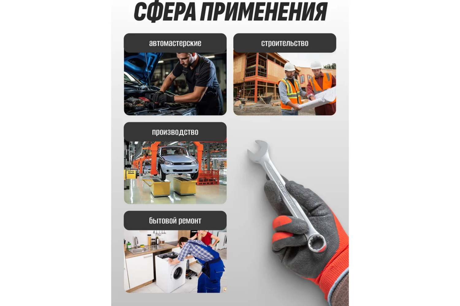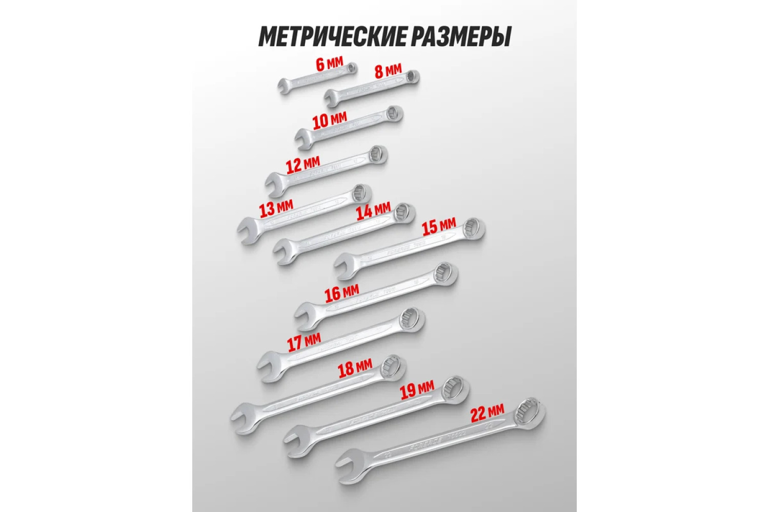 The open-end part is convenient for working with fasteners when access is available from only one side, while the 12-point box-end section ensures a secure grip on heavily loaded threaded connections. The wrenches are perfectly suited for the repair of passenger and commercial vehicles, motor vehicles, snowmobiles, garden equipment, as well as for construction and technical projects.