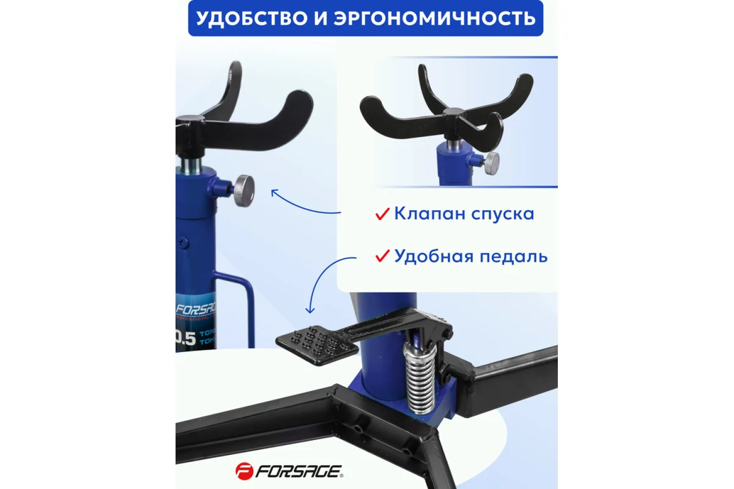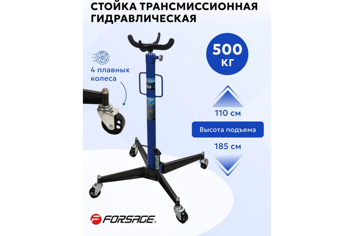 The FORSAGE F-TEL05005 is a vertical hydraulic transmission jack designed to simplify the installation of gearboxes, fuel tanks, and chassis, as well as the replacement of bearings on the lifting platform. This tool is ideal for use in automotive workshops or garages.
