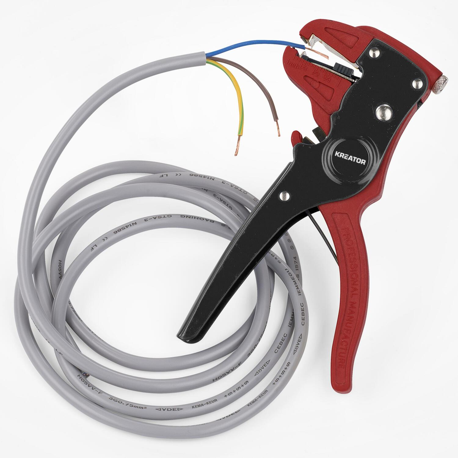 The automatic wire stripper by KREATOR is perfect for removing insulation from electrical wires without damaging the wires. It automatically adjusts to the diameter of the wire. The tool is easy to use and can handle cables of up to 5.5 mm in diameter. The soft, rubber handles provide a firm, non-slip grip and make it comfortable to use.