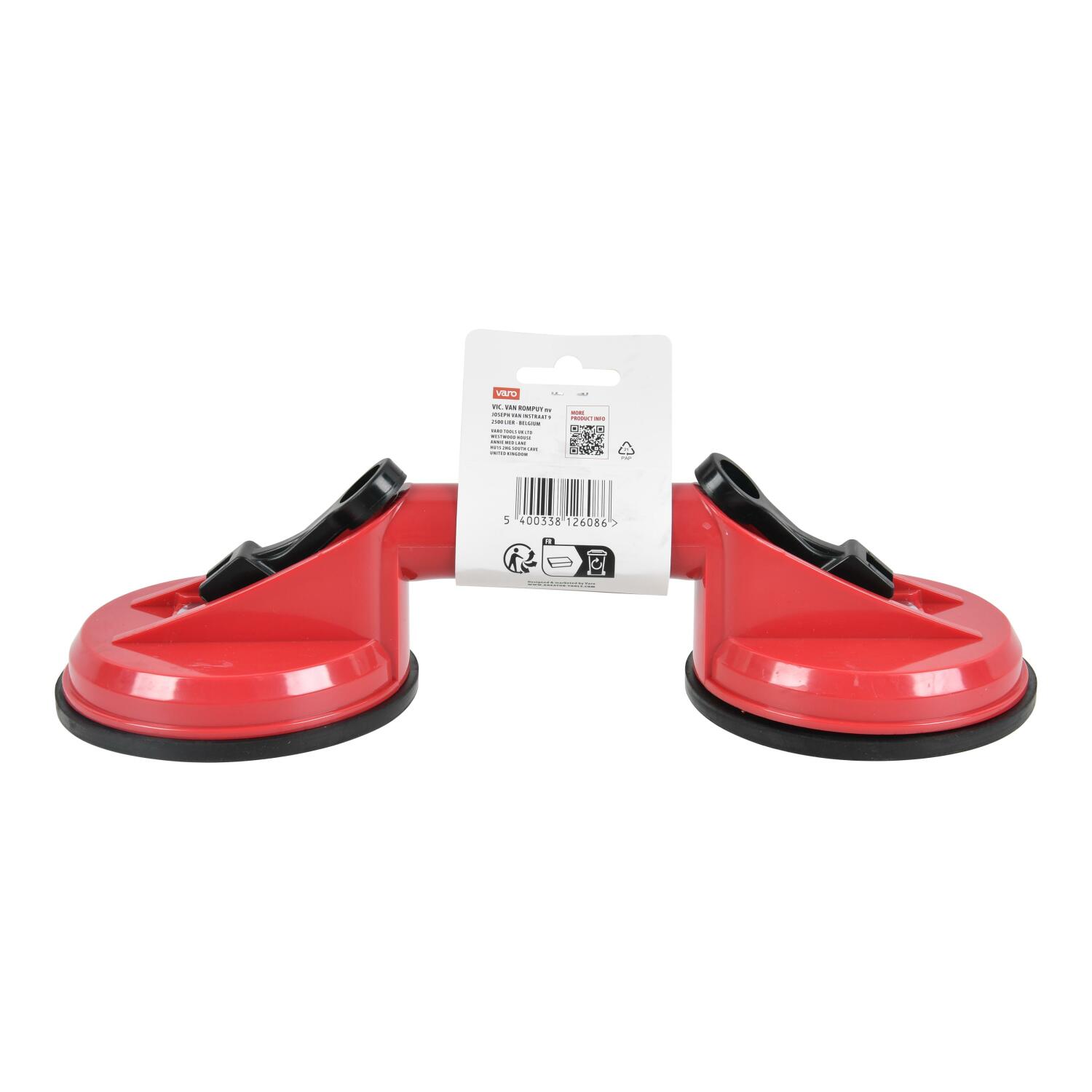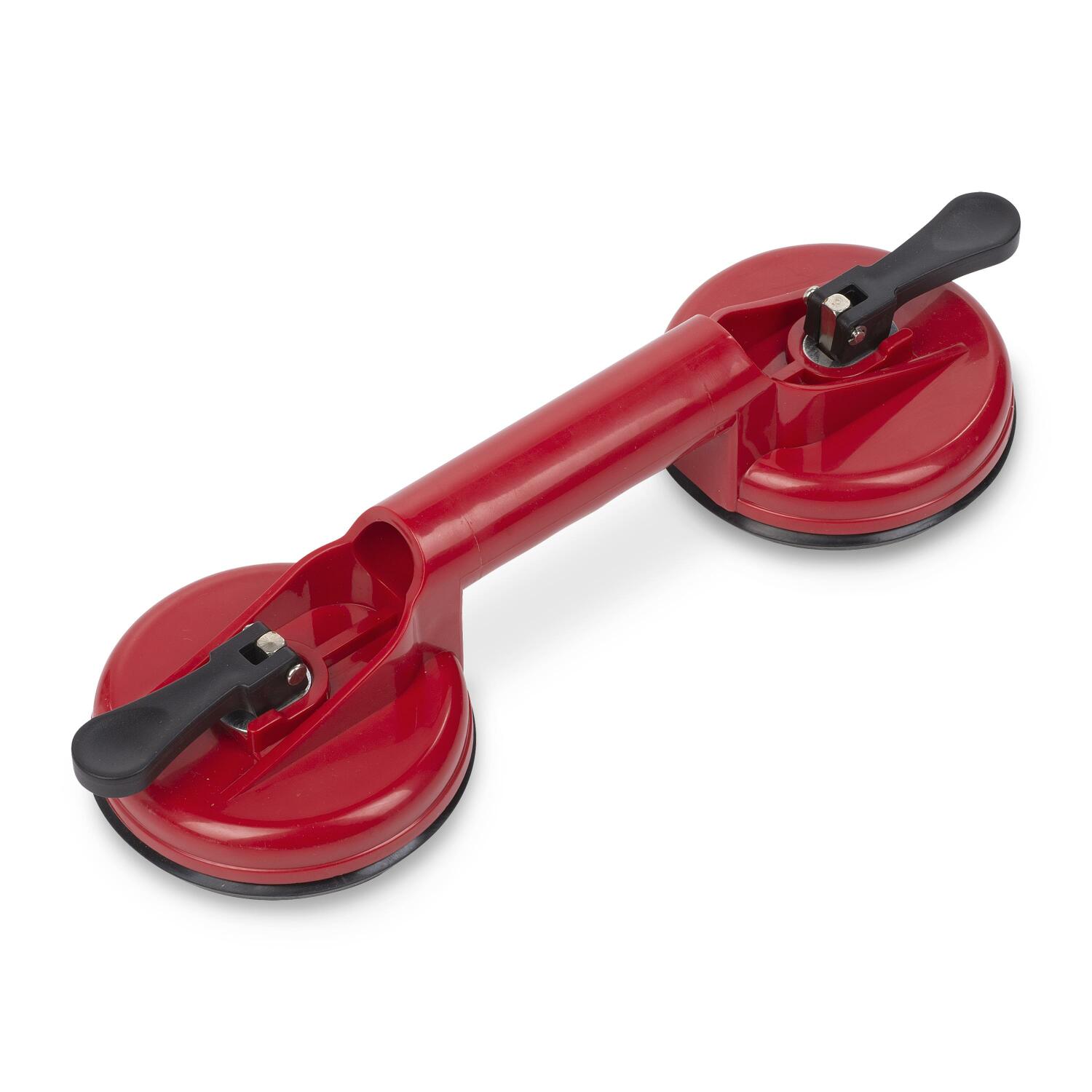 The KREATOR Suction Cups Ø 115mm, 80kg Double are designed to provide a reliable grip on tiles, mirrors, windows, and other smooth surfaces that are hard to transport. Featuring quick release levers, these suction cups ensure a secure attachment while allowing for easy removal without leaving marks. The 115 mm suction cups can support a vertical load of up to 70 kg and a horizontal load of 80 kg.