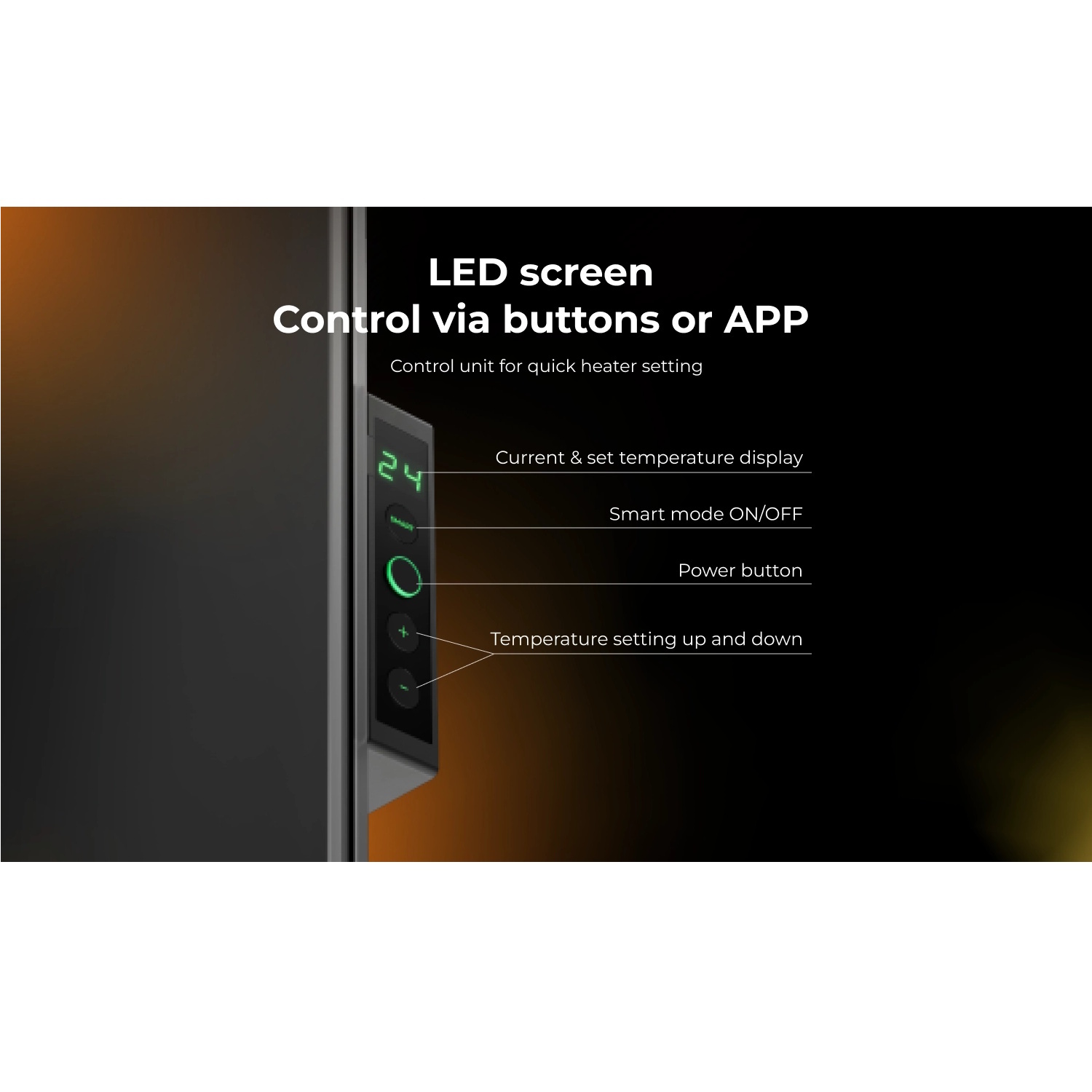 Control: Wi-Fi 2.4 GHz + LED display + touch buttons