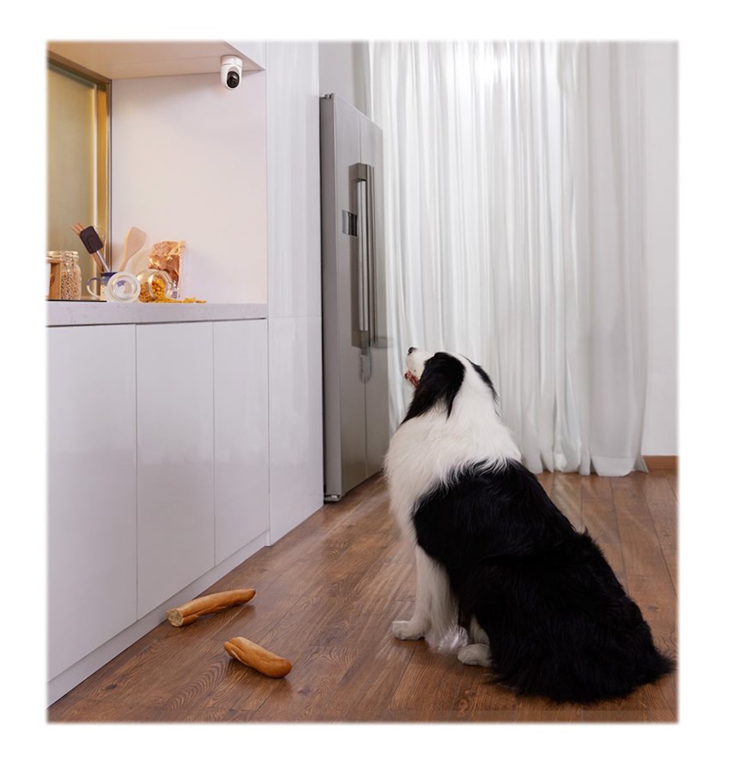 Eufy Indoor Cam 2K Pan & Tilt T8410322 is a compact smart indoor security camera with 2K resolution and motorized pan and tilt functionality, providing full room coverage without blind spots. The camera features AI-based motion detection, automatic motion tracking, night vision, and local video storage on a microSD card up to 128 GB. Support for H.265 and H.264 video codecs ensures efficient data compression while maintaining high image quality. The device is suitable for both tabletop placement and ceiling mounting, making it a flexible solution for home security and monitoring.