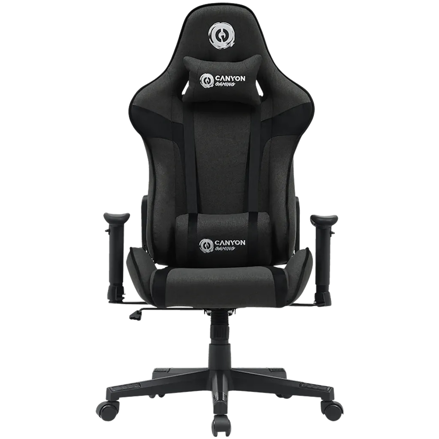 The CANYON Crest FCH01 gaming chair offers a comfortable and ergonomic seat with fabric upholstery, 2D adjustable armrests, and a 90°–180° reclining backrest. It comes with headrest and lumbar pillows and a Class-4 gas lift, providing stable height adjustment and reliable support for users up to 150 kg. This chair is a practical solution for both gaming and everyday work.