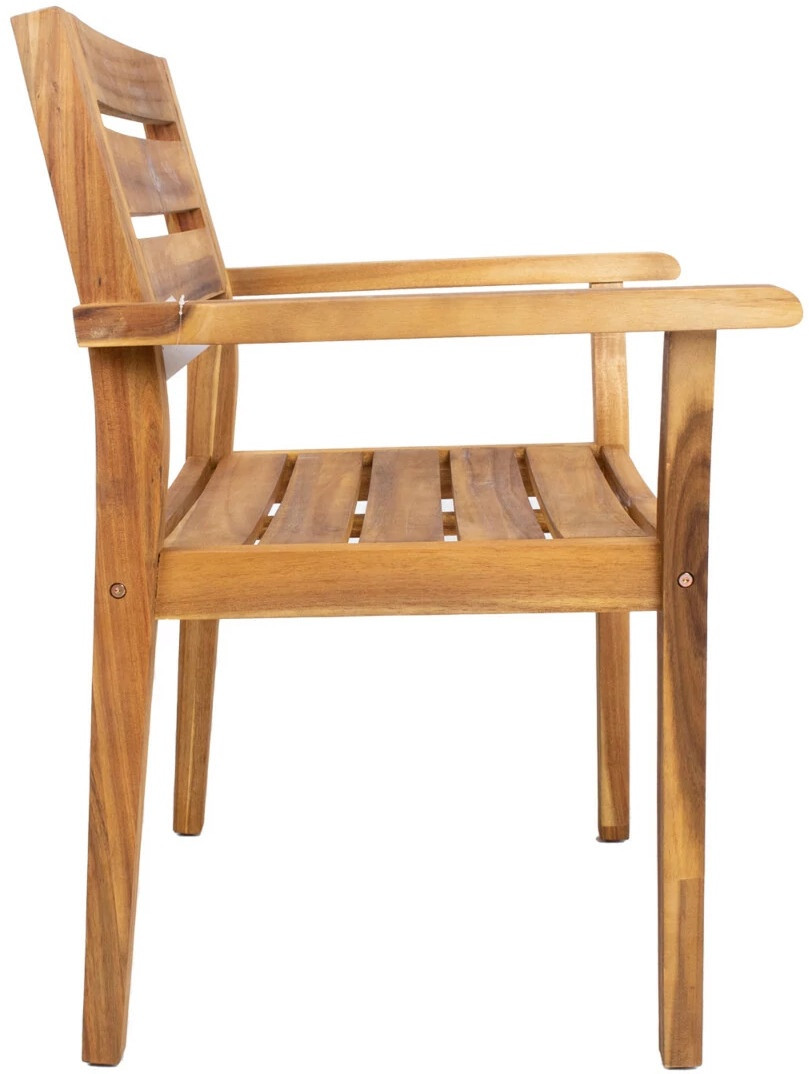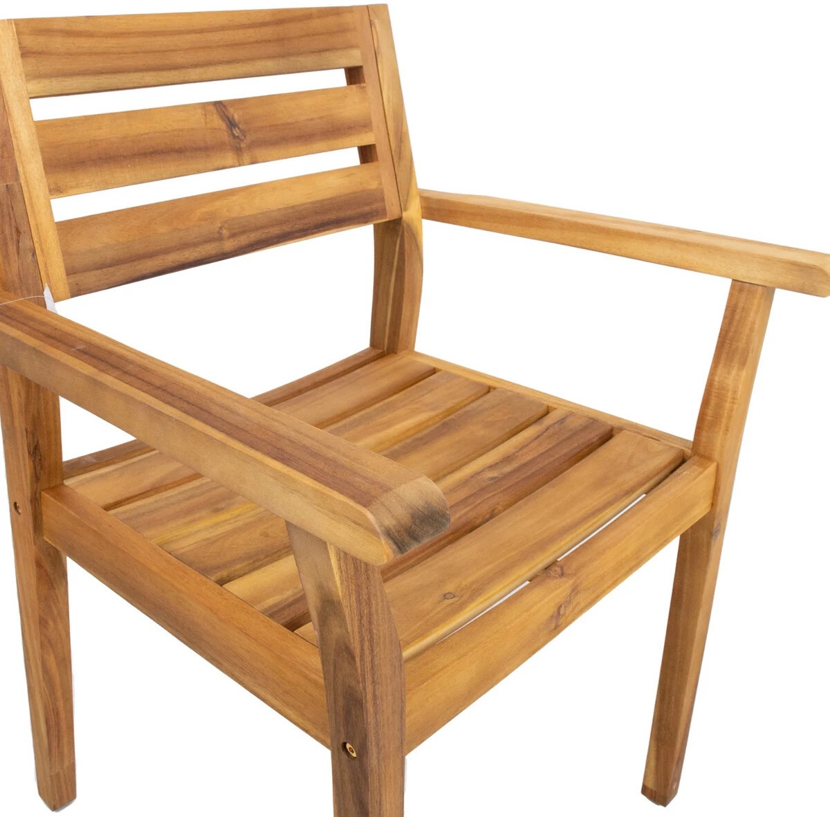 Chair FLORIAN is made of acacia wood and finished with oil in teak color. Overall dimensions of the chair 60x59xH85cm. Maximum weight capacity 100kg. CARE: wood is a living product that changes and ages over time. Clean the furniture regularly, protect from excess moisture and UV radiation. A light sanding and new oil film at least once a year is sufficient to give furniture fresh look again. STORAGE: at the end of the summer season, we recommend to store the garden furniture indoors. Clean and dry the furniture before storing. Use a cool, dry, well-ventilated room for storage.