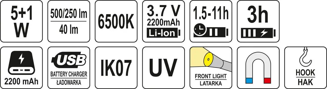 Workshop Lamp 5W Cob, 500Lm + 40Lm, Uv YT-08517 YATO