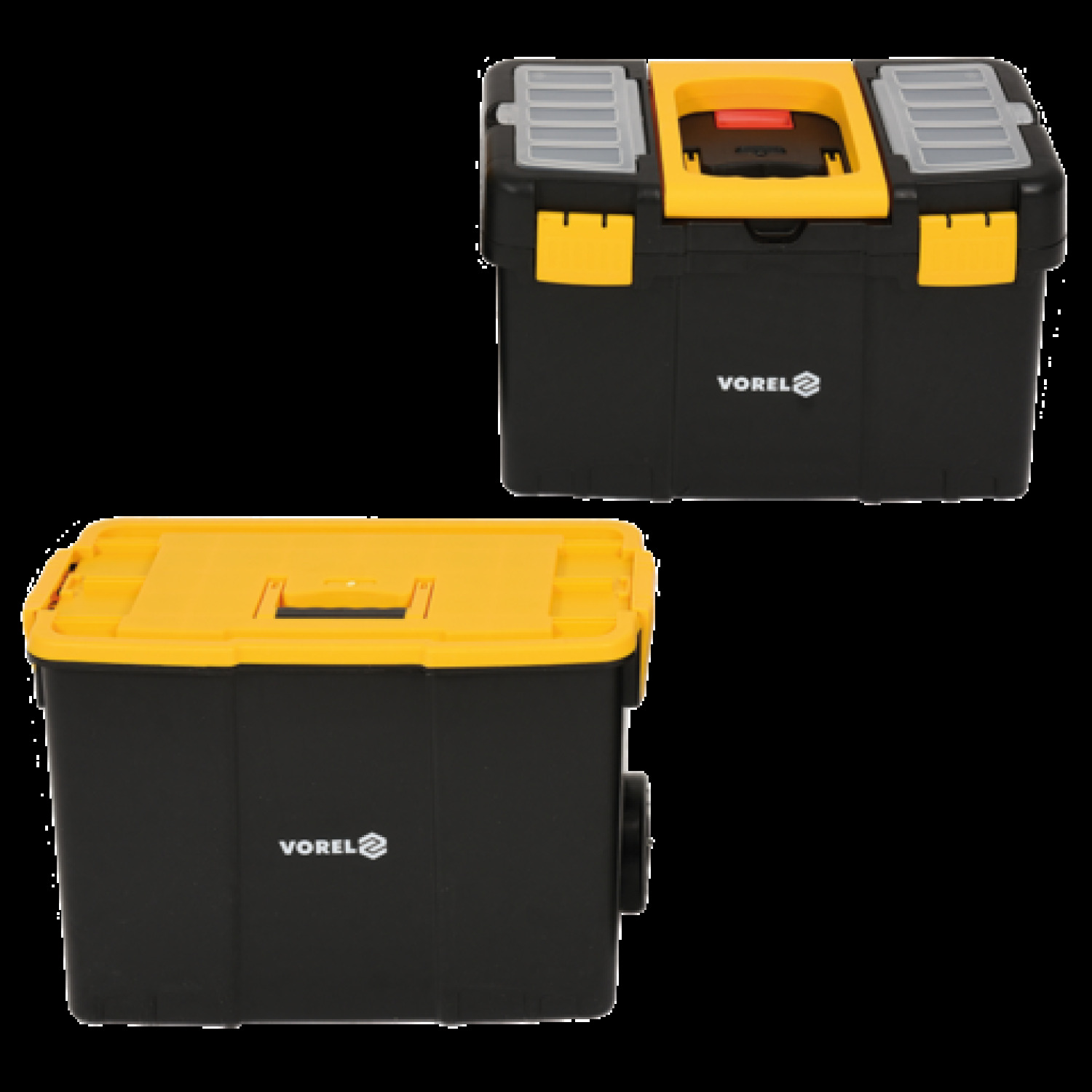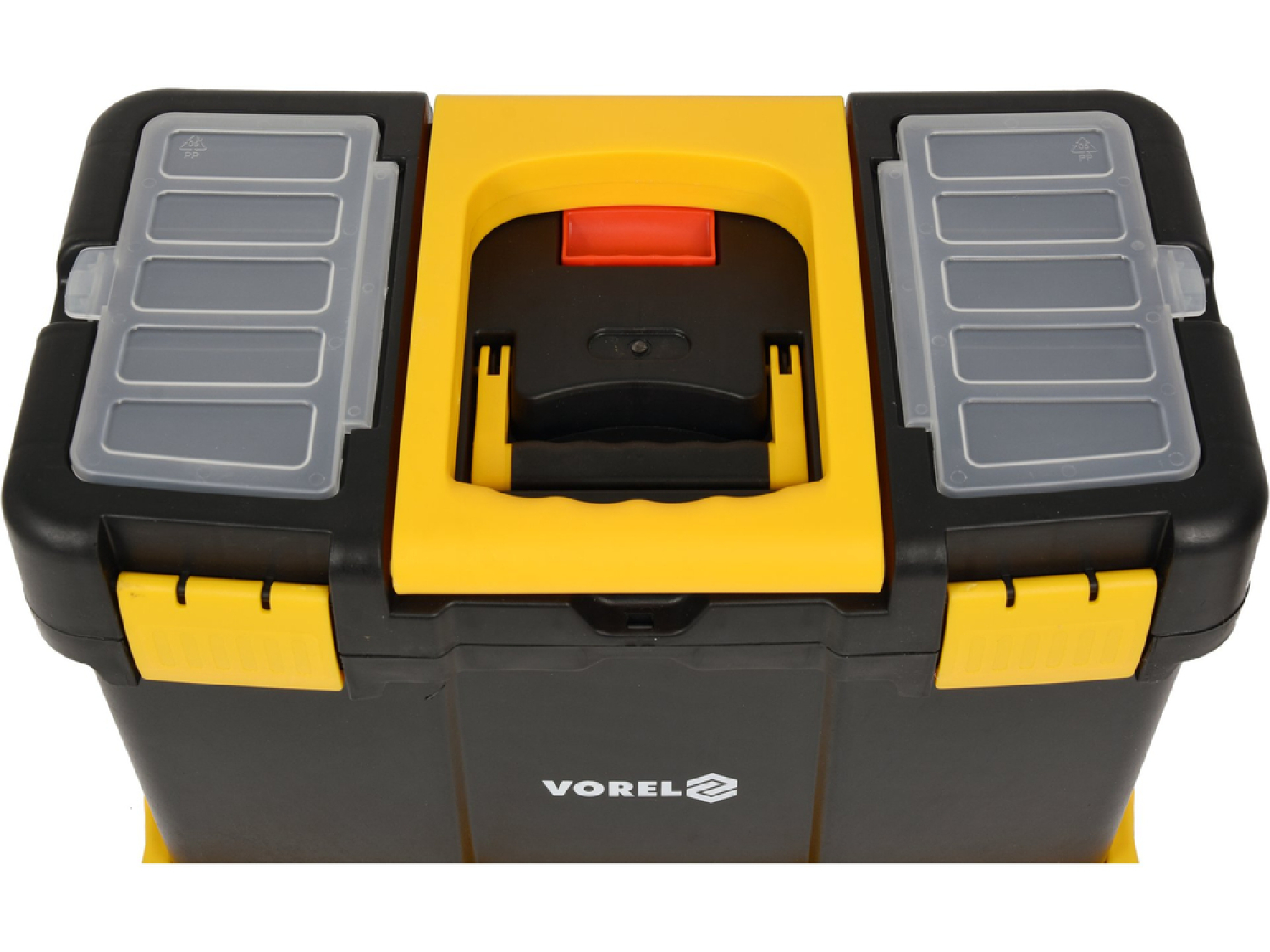 The VOREL 78731 2-in-1 Trolley Tool Box is a versatile storage solution designed for organizing small tools and accessories.