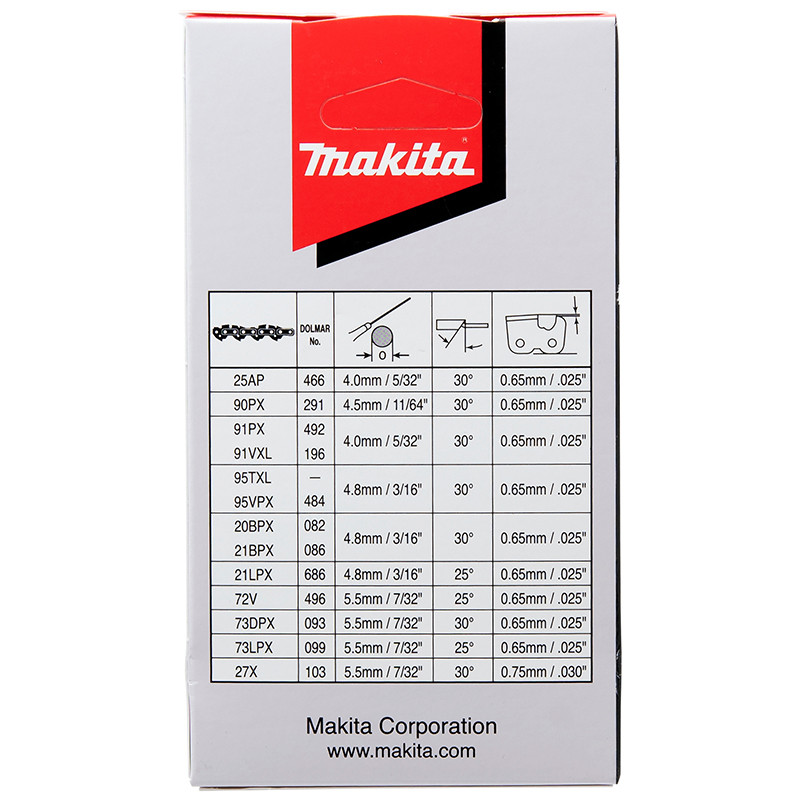| Chain thickness, mm | 1.3mm / 0.050'' |