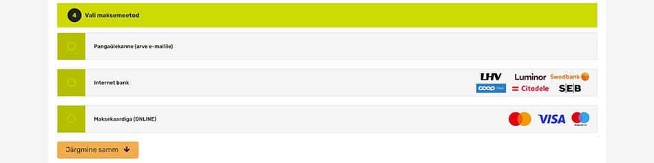 - Me ei paku tootete eest tasumisel järelmaksu, kullerile ja sularaha eest tasumise võimalust.