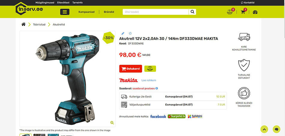 - Arvestame tarneaega alates makse laekumisest - makse laekub meile järgmisel päeval, kui tasud arve reedel või nädala vahetusel, laekub meile makse esmaspäeval. Maksed ei laeku ka riiklikel pühadel, vaid neile järgneval tööpäeval. Tellimust hakkame käitlema siis, kui makse on meile laekunud. Postitame tellimuse, kui tooted on meie laos olemas ja raha on INSERV kontole laekunud hiljemalt kell 15:00.