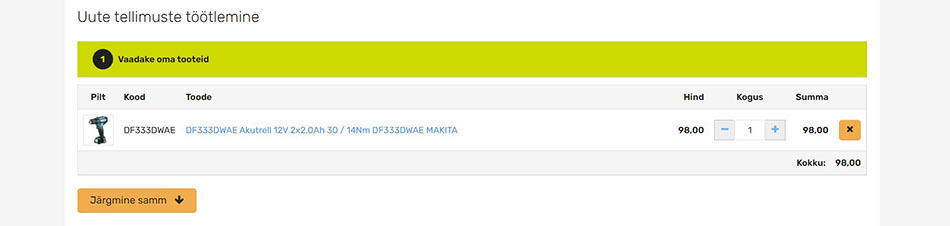 2. Ostukorv juhatab edasi tellimust vormistama - Järgmine samm