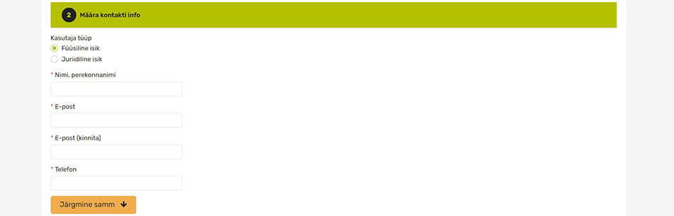 - Eraisik - sisesta kõik küsitud andmed, need on vajalikud tellimuse kohale toimetamiseks.