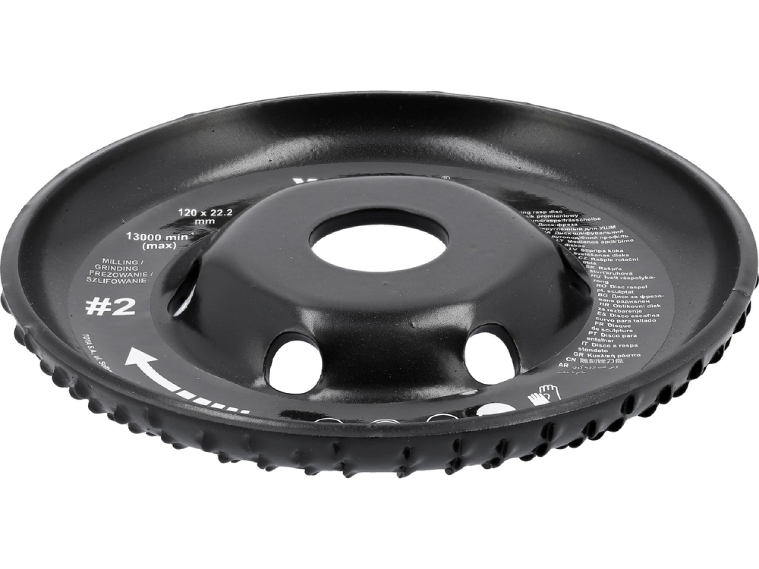 Didžiausias greitis, pasiekiantis 13,000 rpm, leidžia raspui veikti praktiškai ant bet kurio šlifuoklio. Aštrūs ir patvarūs dantys užtikrina ilgesnį disko tarnavimo laiką.