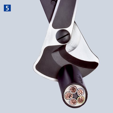 Kabeļu šķēres, KNIPEX, 95 32 038, regulējami teleskopiskie rokturi līdz 770 mm, griešanas jauda līdz Ø 38 mm