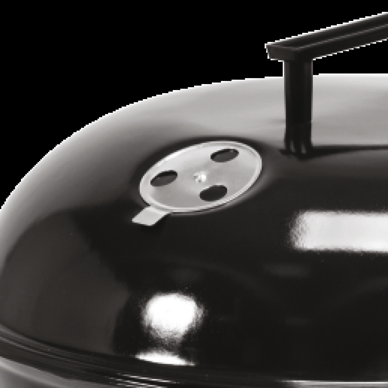 Klasikinis apvalus anglinis grilis su hromuota reste ir temperatūros išlaikymo dangčiu. Aprūpintas anglių reste, pelenų dėžute, transportavimo ratukais ir oro cirkuliacijos valdymo anga. Emaliuotas dangtis su rankena leidžia reguliuoti ir kontroliuoti temperatūrą bei išlaikyti dūmų aromatą. Dėl dangčio šone įmontuoto kabliuko, jį galima pakabinti ant indo krašto. Papildoma nauda yra naudingas dangtis, kuris apsaugo nuo vandens, drėgmės, dulkių ir saulės spindulių, ilginant grilio tarnavimo laiką.