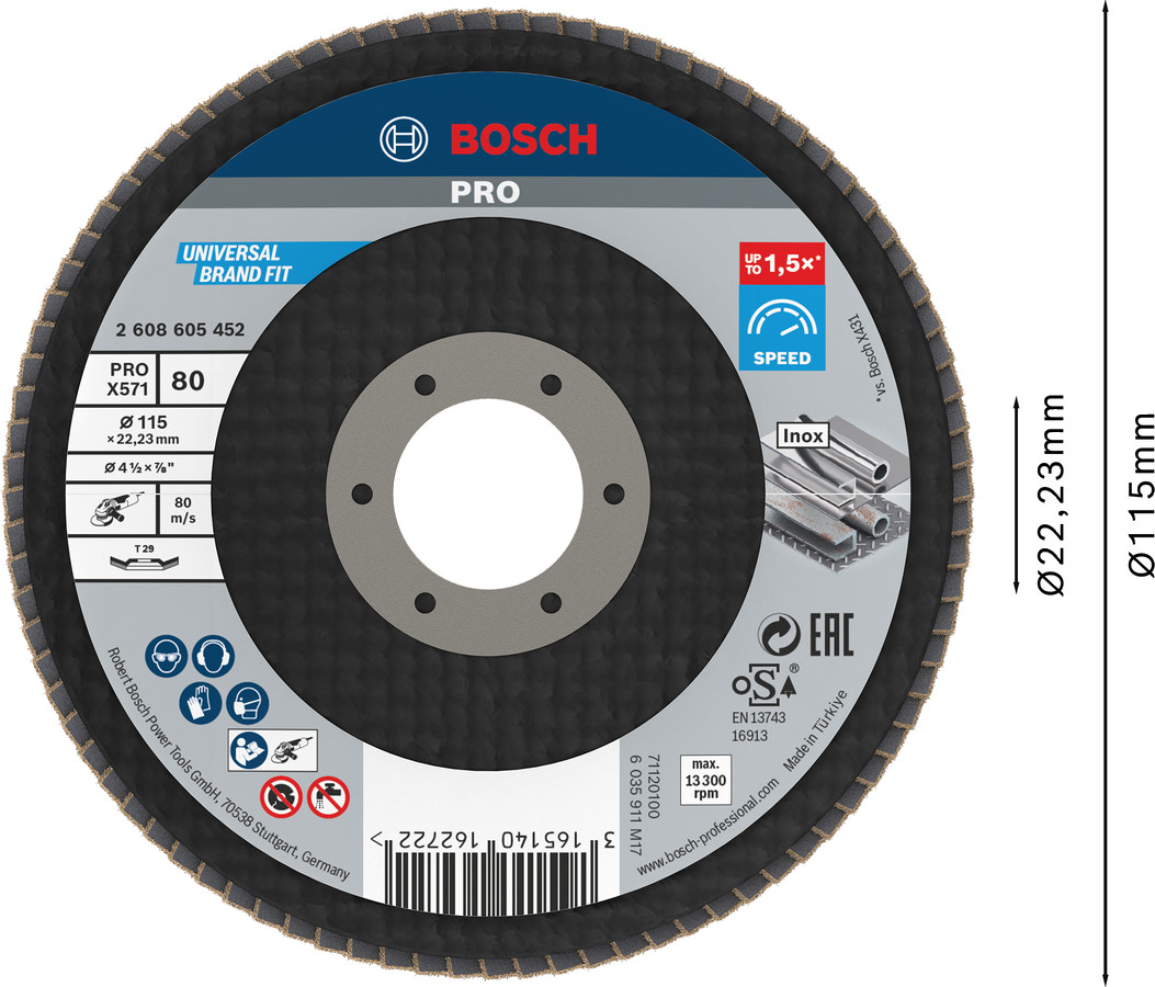 Slīppap.slīpšķ.metal top D 115 mm, K 80, 1 gab., Mazām leņķa slīpmašīnām PRO X571 VĒDEKĻVEIDA DISKS, 2608605452, BOSCH