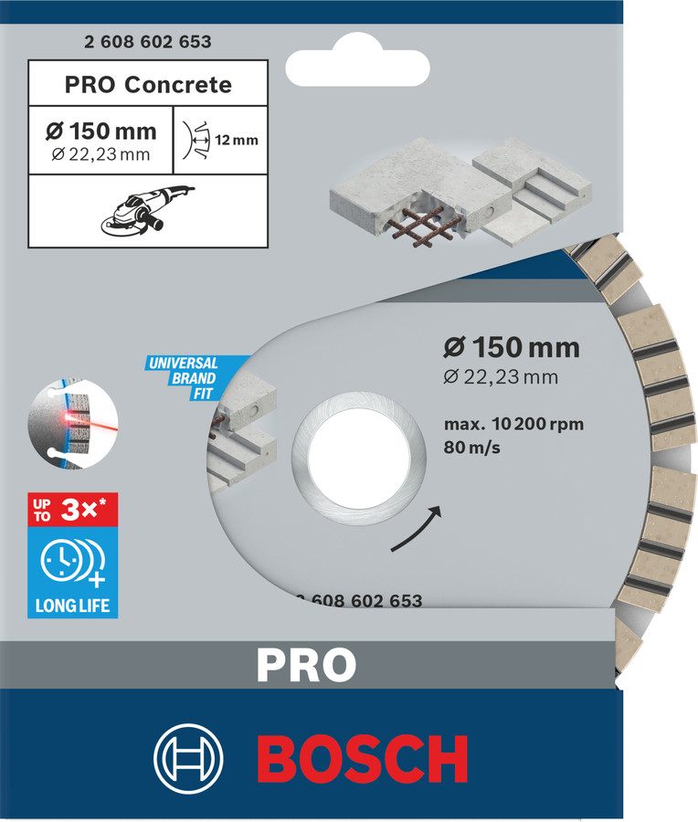 Lielām leņķa slīpmašīnām ar fiksācijas uzgriezni PRO CONCRETE DIMANTA GRIEZĒJDISKS, 2608602653 BOSCH