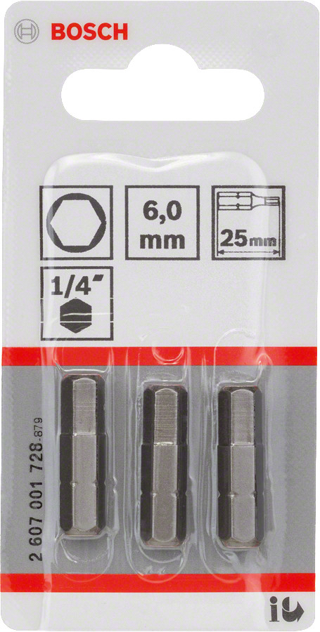 Skrūvgrieža uzgaļi Extra Hard, S2 tērauds, HEX6, 25mm, 3gab, 2607001728, BOSCH