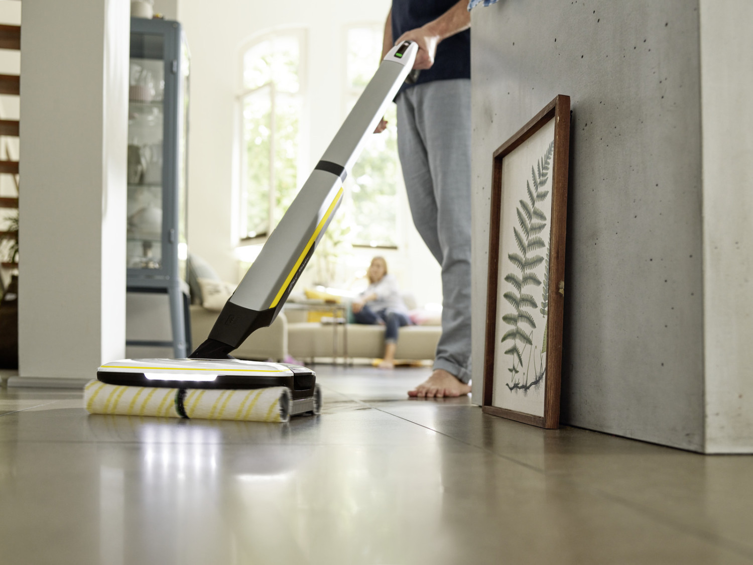 * Kärcher grindų valiklis užtikrina iki 20 % geresnį valymo rezultatą, lyginant su įprastomis grindų plovimo šluotomis su keičiama šluoste, „Plovimo“ testų kategorijoje. Taikoma vidutinėms valymo efektyvumo, nešvarumų surinkimo ir kraštų valymo testo rezultatams. **Kärcher grindų valikliai sumažina valymo laiką iki 50 %, nes įprastus namų nešvarumus galima išvalyti vienu judesiu, t.y. be būtinybės išsiurbti dulkes prieš plovimą.