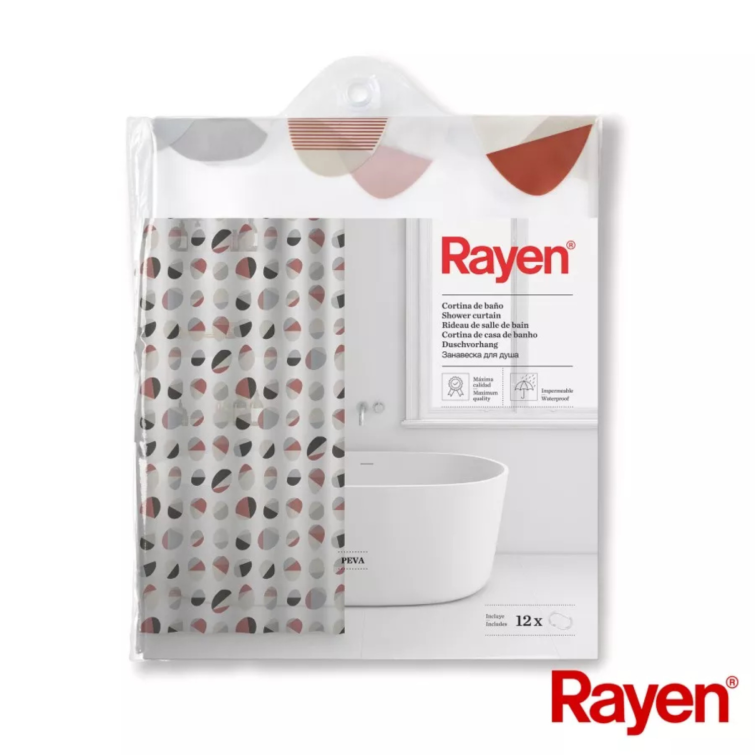 Dušo užuolaida RAYEN, modelis 01235017, yra puikus aksesuaras jūsų vonios kambariui, su šiuolaikiniu ir elegantišku dizainu, tinkamu bet kokiam interjerui. Papildome užuolaidą 12 kabliukų montavimui.