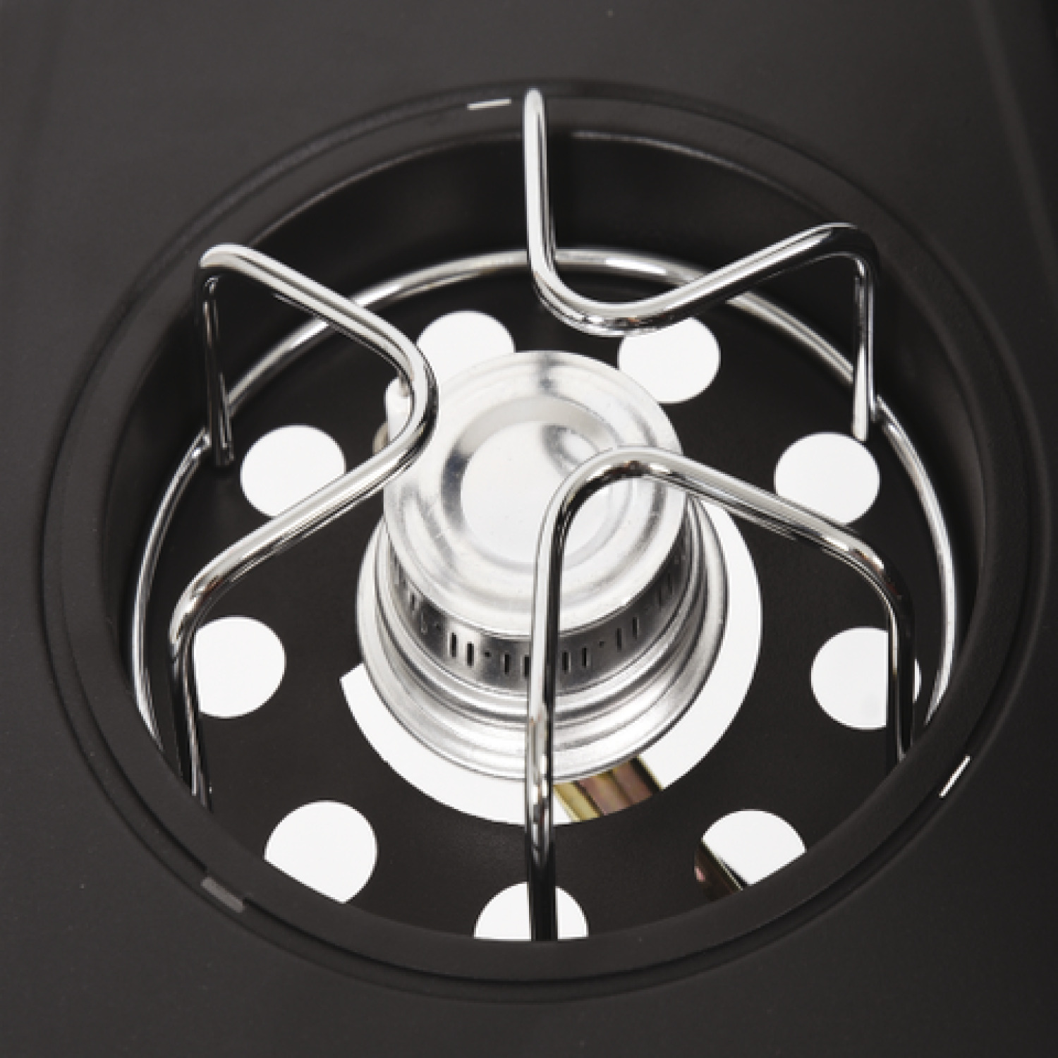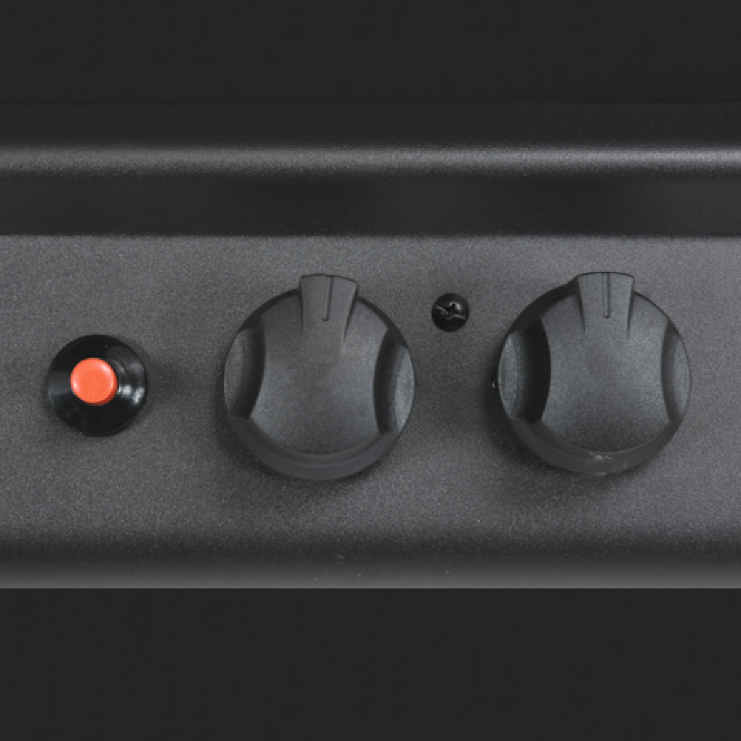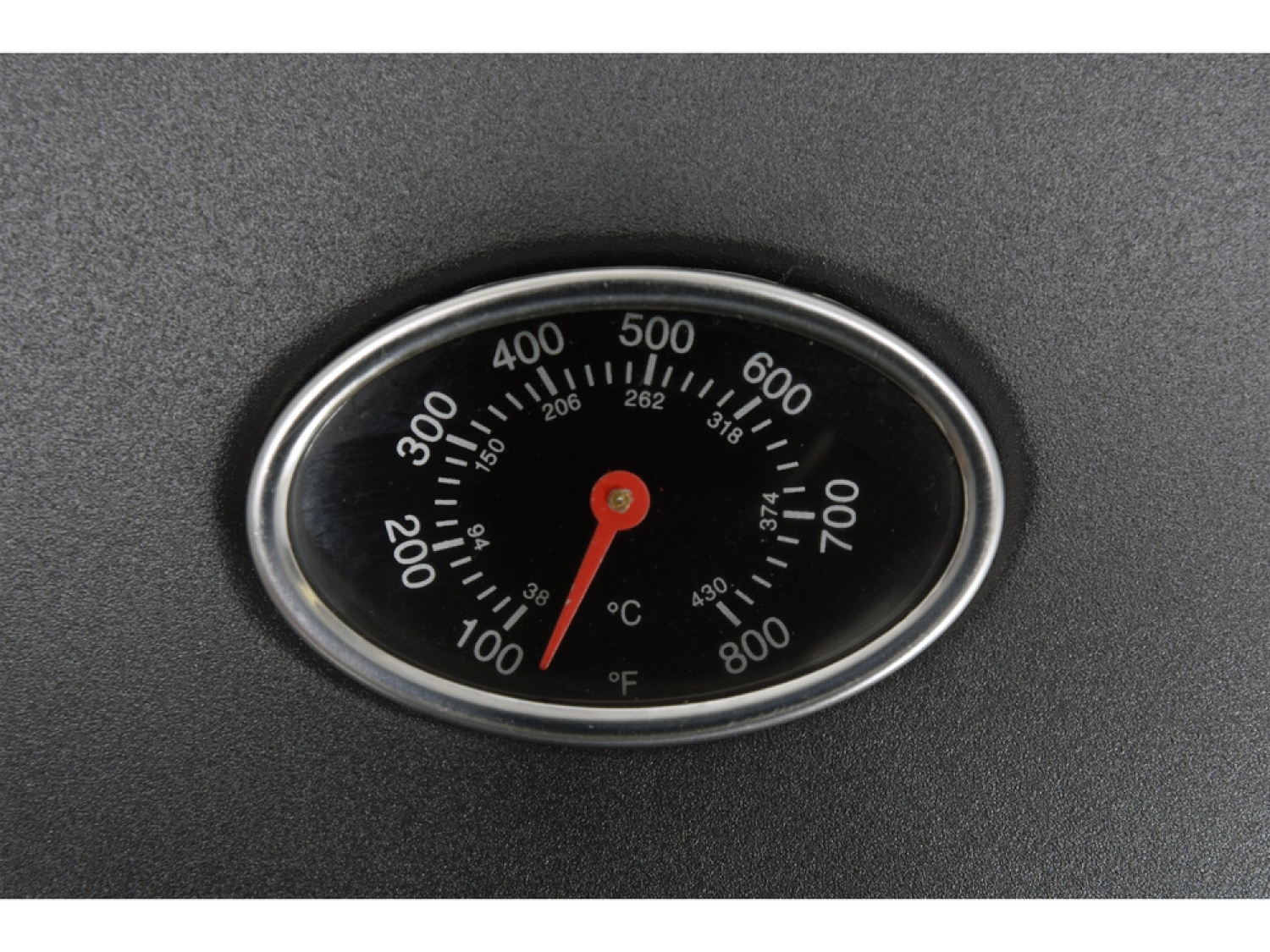 TEMPERATŪROS KONTROLĖ - su rankenėlėmis, dangčiu, keliais degikliais ir termometru galite reguliuoti temperatūrą mėsai, daržovėms ir sūriui, kuriuos kepate.