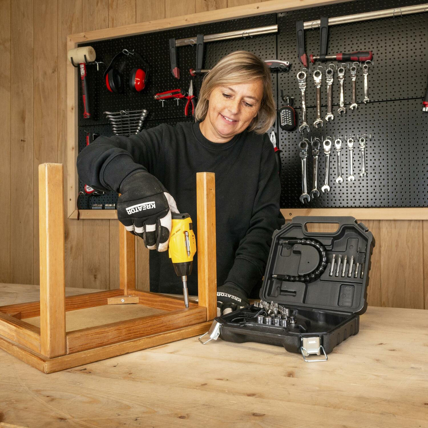 Jūsų įsigyti baldai reikalauja surinkimo, o prieš jus atsiveria begalinis varžtų kiekis, kurį reikia suveržti. Nepergyvenkite! Su Powerplus POWX00406 akumuliatoriniu atsuktuvu šį darbą atliksite greitai ir lengvai. Kadangi atsuktuvas veikia su baterija, jūsų riešams bus maža apkrova, net ir dirbant su daugeliu varžtų. Atsuktuvas yra komplektuojamas su reikiamais atsuktuvo galais, šešiakampiais grąžtais ir veržliarakčiais, taip pat lanksčia pailginimo ašimi, kad galėtumėte nedelsdami pradėti darbą.