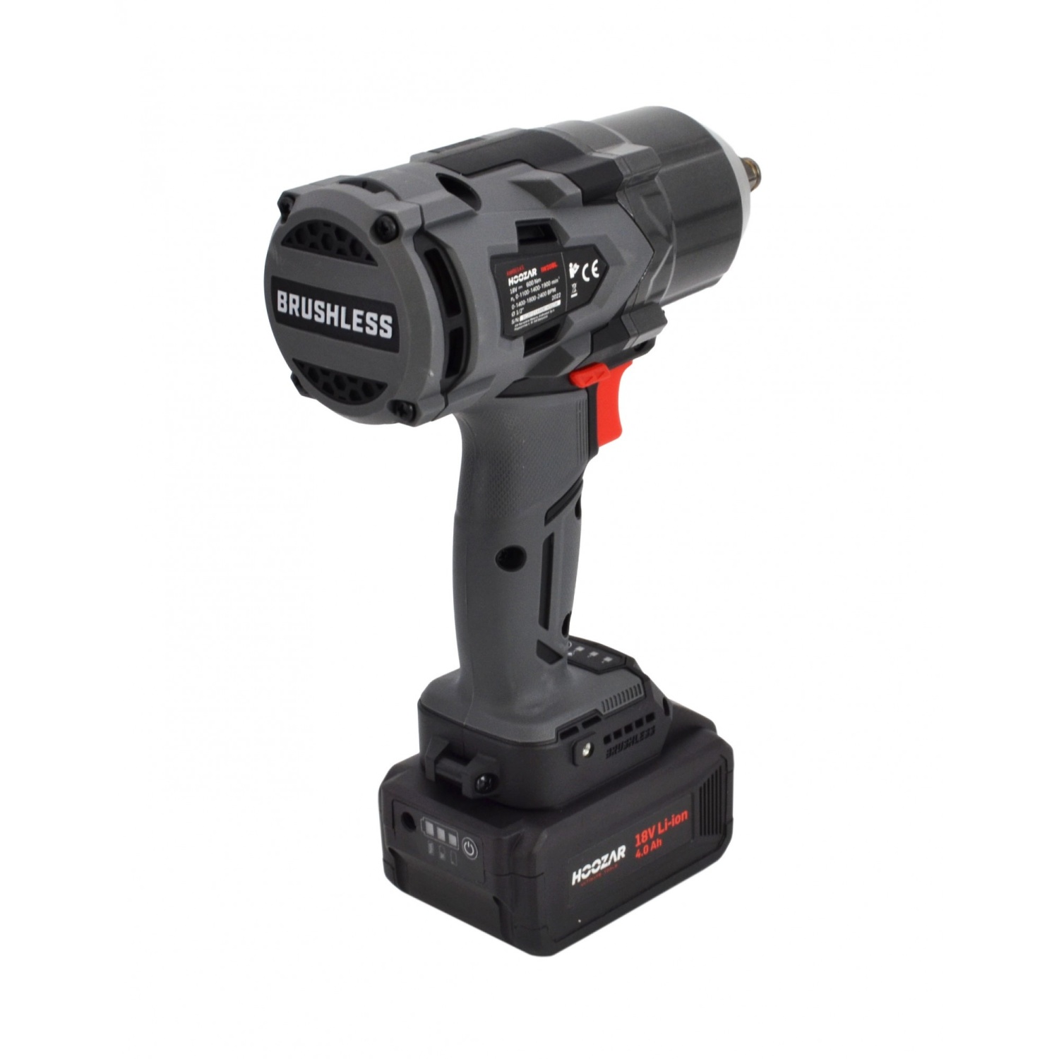 Bezvadu trieciena uzgriežņu atslēga 1/2" 18V, HOOZAR, AW06143, 600 Nm griezes moments, 3 ātrumi, 4.0 Ah akumulators