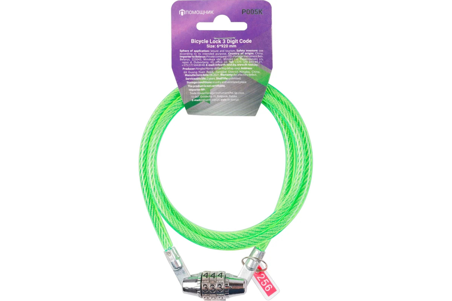 Dviračio spyna Pomocnik P005K su elastingu dizainu ir ryškiai žaliu apvalkalu yra puikus sprendimas jūsų nuosavybės apsaugai. Trys skaitmenų koduota spyna užtikrina patvarią konstrukciją, tad galite būti ramūs dėl savo turto. Pagrindinis šios spynos privalumas – ji koduota, todėl jums nebereikia turėti raktų. Spynos ilgis yra 92 cm, o skersmuo – 6 mm, kas yra optimalu ir patogu naudoti. Dėl elastingos konstrukcijos spyna lengvai sulankstoma ir patogiai telpa kuprinėje ar krepšyje.
