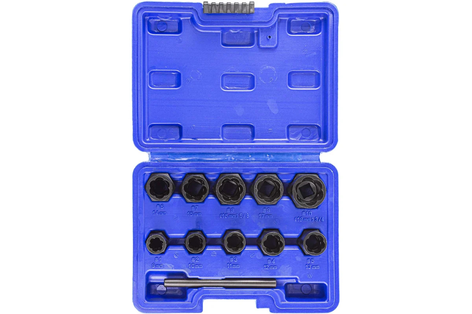 Rinkinys nesunkiai susidoroja su rūdytais, užstrigusiais ar deformuotais varžtais ir veržlėmis. Kairiarankis spiralinis dizainas užtikrina tvirtą sukibimą ir efektyvų išsukimą, o patvarus chromomolibdeno lydinys gali atlaikyti dideles apkrovas, įskaitant naudojimą su smūginiais įrankiais.