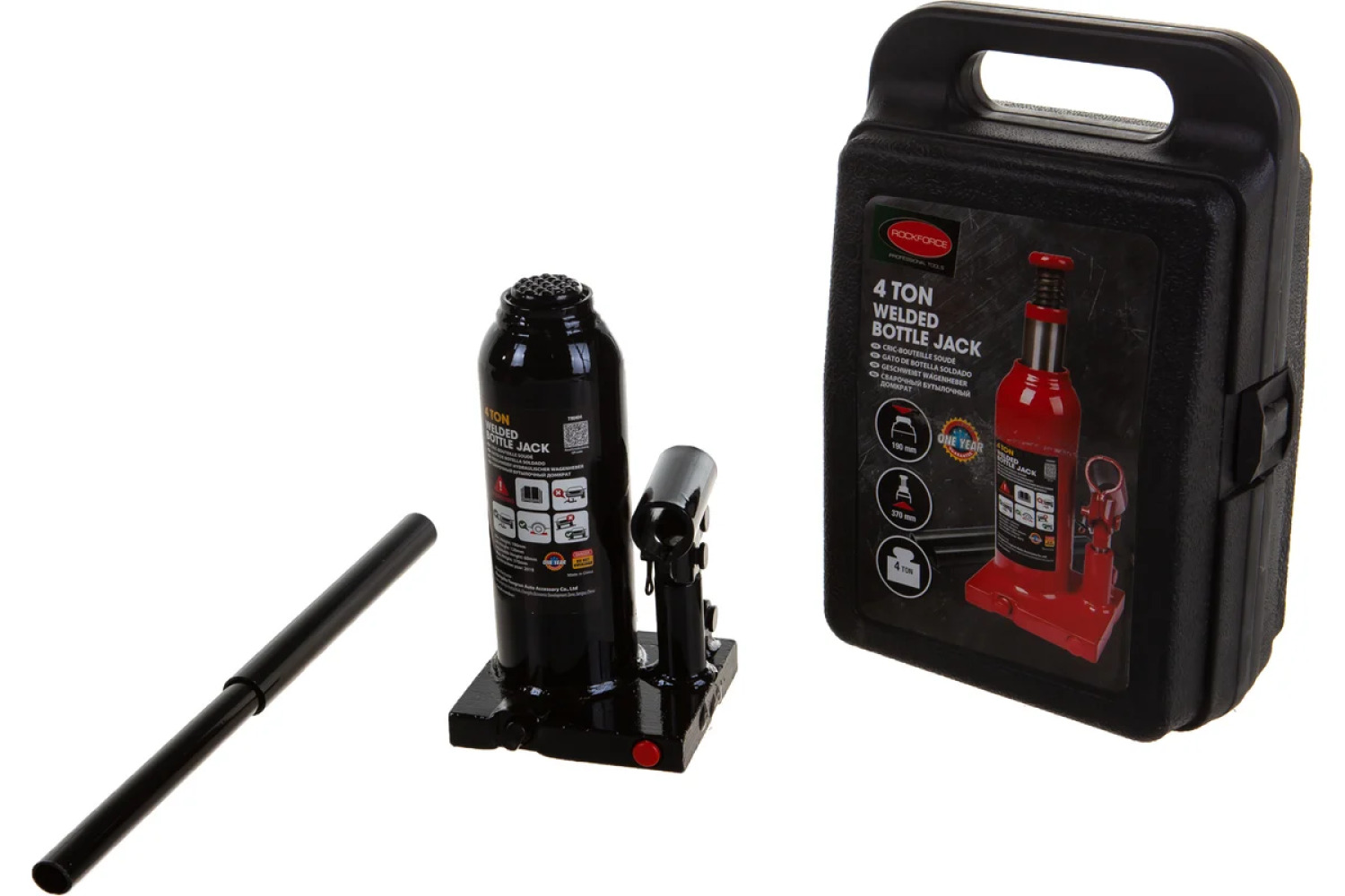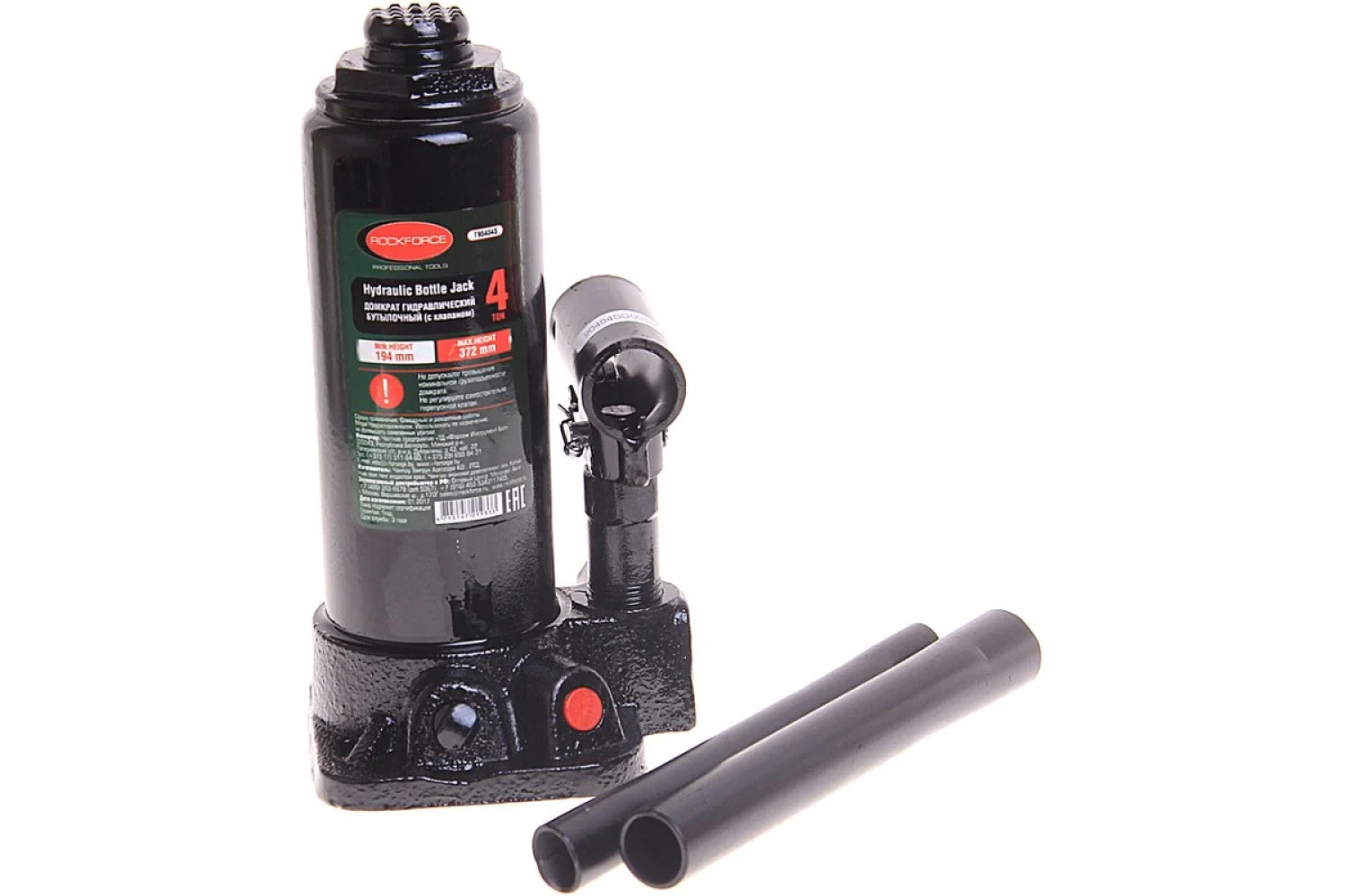 Hidraulinis butelinis domkratas ROCKFORCE 4t, modelis RF-T90404-S, su pakėlimo aukščiu nuo 194 iki 372 mm, yra puikus pasirinkimas automobilių remonto dirbtuvėms, garažams ir servisams. Šis prietaisas atitinka visus saugumo reikalavimus.