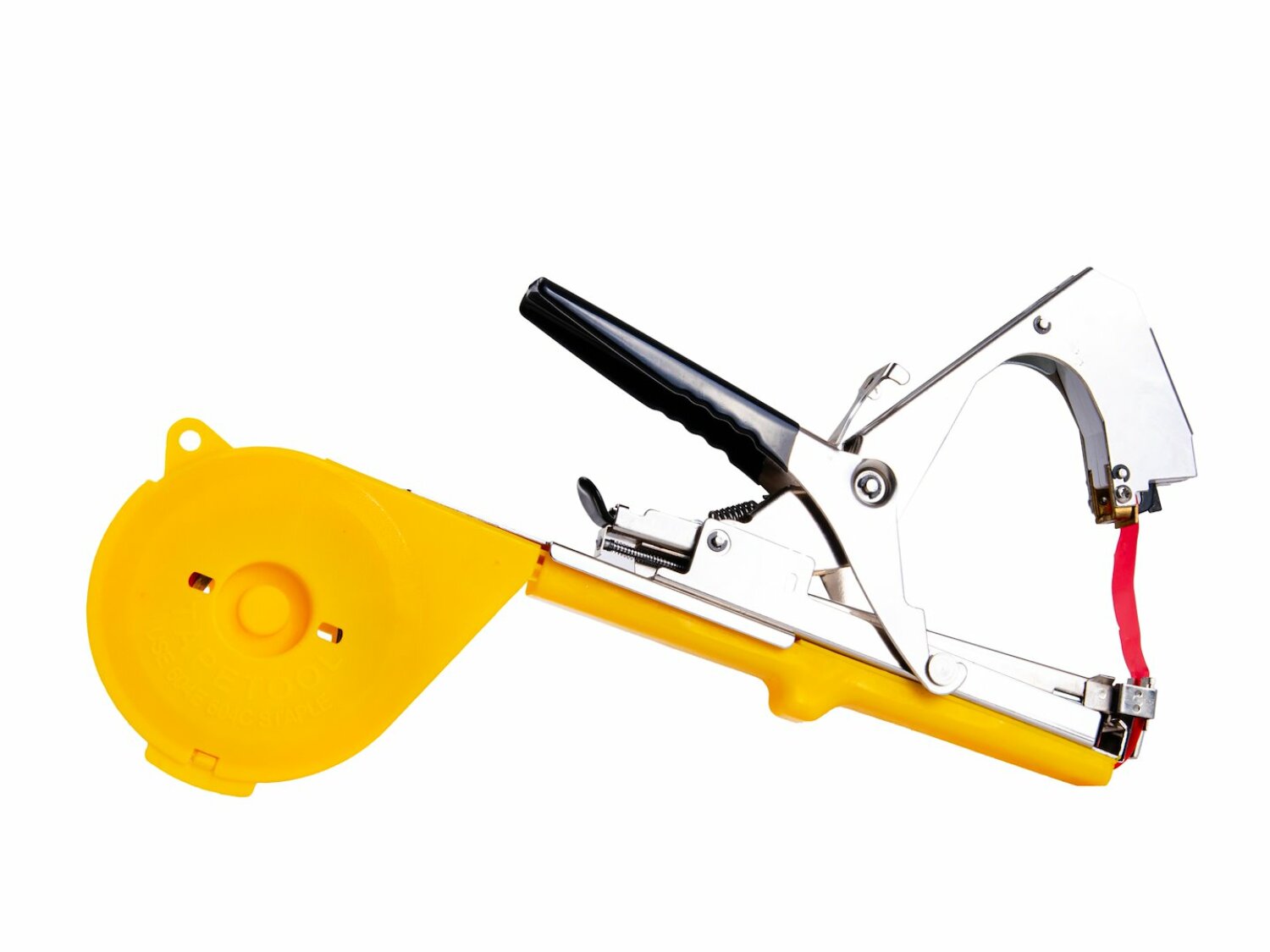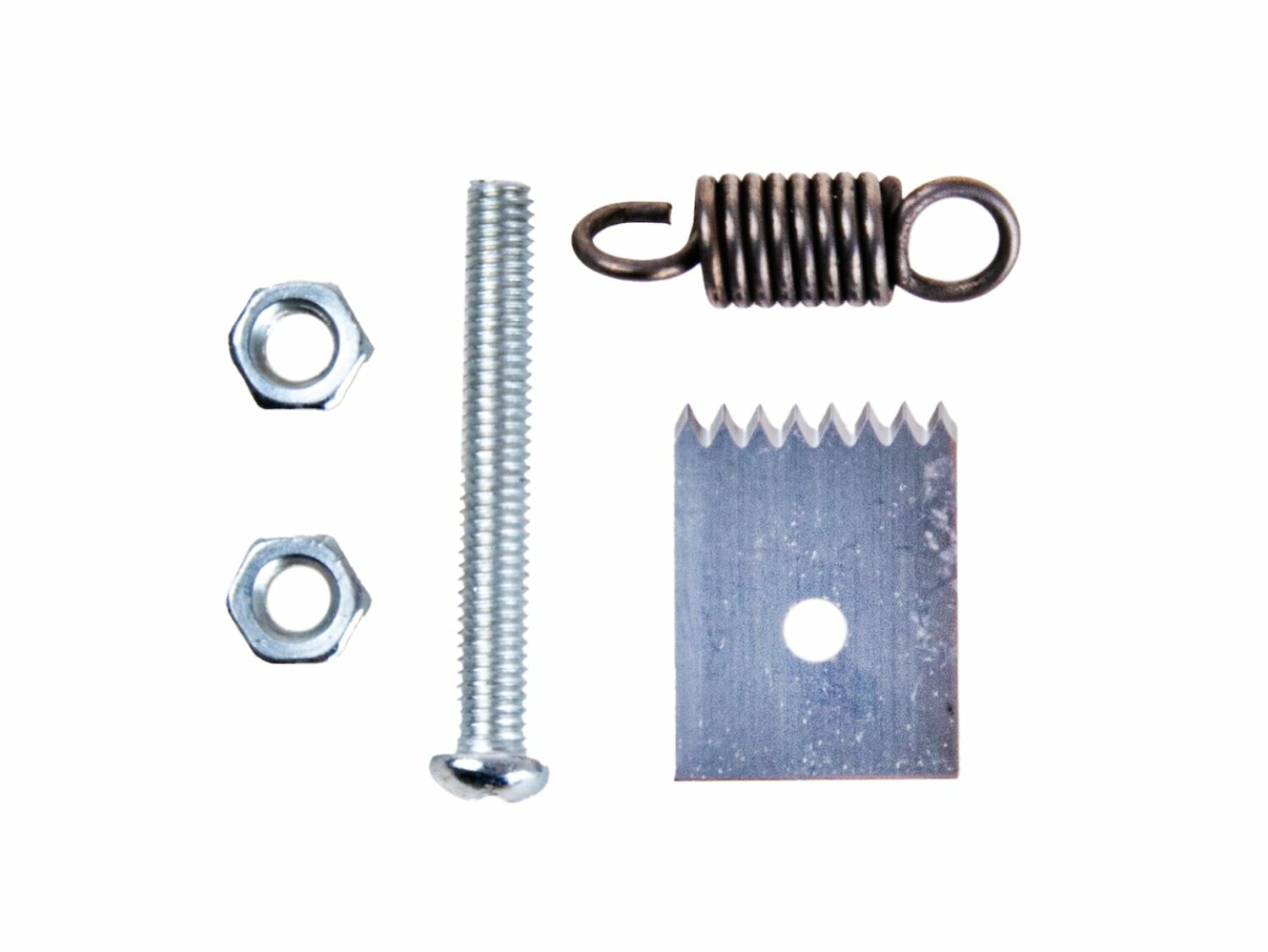 Rinkinyje: tapeneris su juosta ir sąvaržomis, atsarginis varžtas, veržlės, spyruoklė ir peilis.