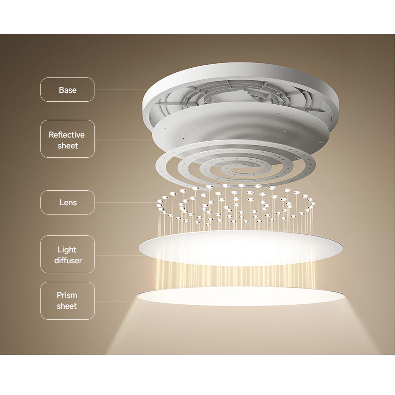 • Kompaktiška 35 cm skersmens konstrukcija užtikrina švelnų ir tolygų šviesos paskirstymą, sukurdama jaukią atmosferą svetainėse, miegamuosiuose, koridoriuose ar darbo zonose.