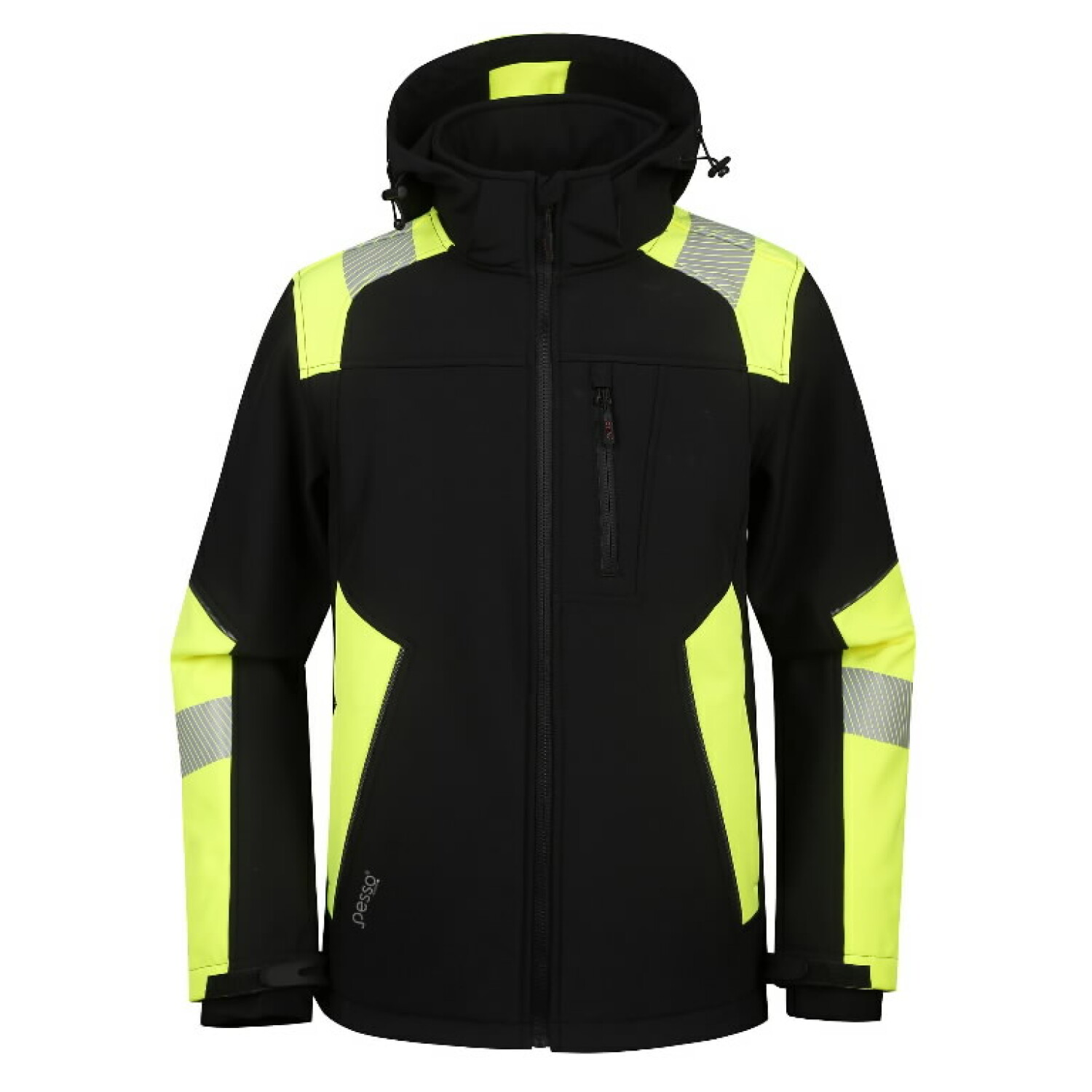 Hi-vis softshell jaka Astra, melna/dzeltena, XL, Pesso