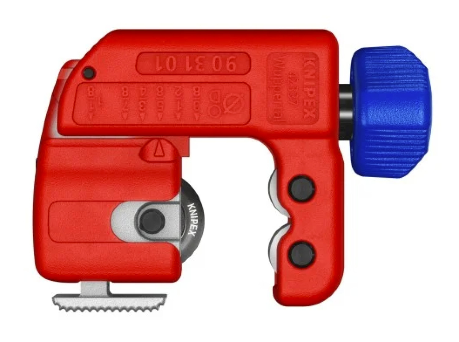 KNIPEX 90 31 01, taip pat žinomas kaip KNIPEX TubiX® S, yra kompaktiškas vamzdžių pjoviklis, specialiai sukurtas efektyviam pjovimui siaurose erdvėse. Jis turi QuickLock vienos rankos užrakto mechanizmą, leidžiantį vartotojams savarankiškai laikyti ir tvirtinti vamzdį, taip padidinant naudojimo patogumą.