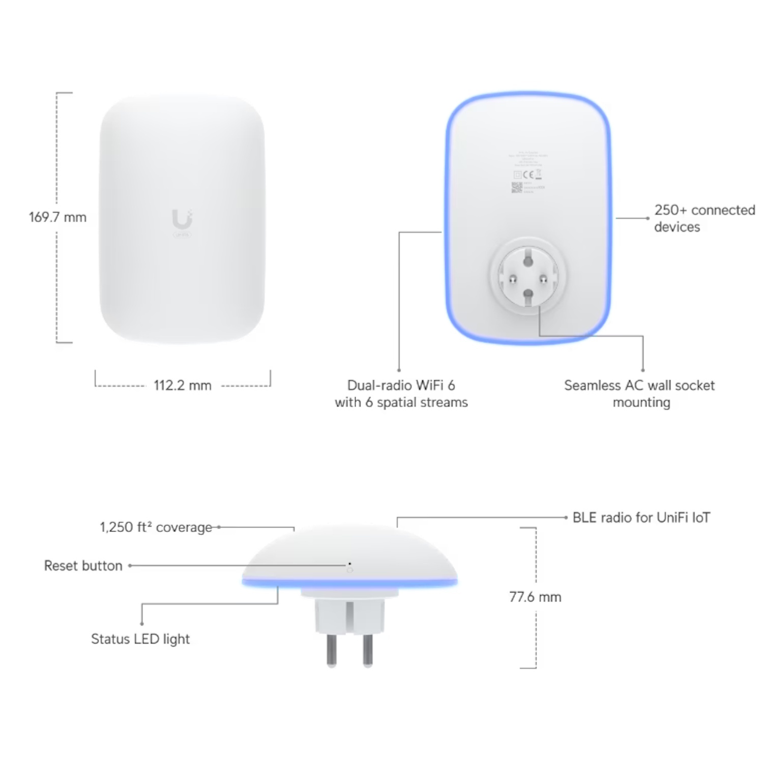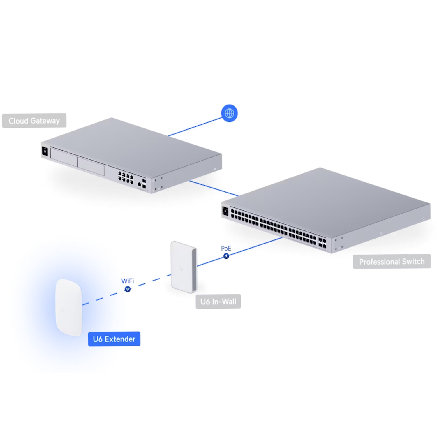 Ubiquiti U6 Extender yra Wi-Fi 6 belaidis stiprintuvas, skirtas greitam ir paprastam esamo belaidžio tinklo išplėtimui be papildomų kabelių. Naudodamas IEEE 802.11ax technologiją, šešias erdvines srautus ir iki ~5,3 gigabitų per sekundę bendrą pralaidumą, jis užtikrina stabilų ir galingą signalą iki ~115 kvadratinių metrų plote ir palaiko daugiau nei 300 prijungtų įrenginių.